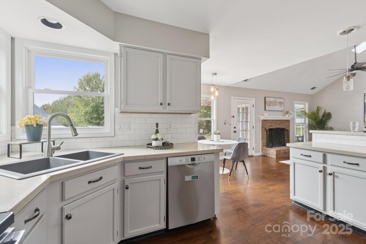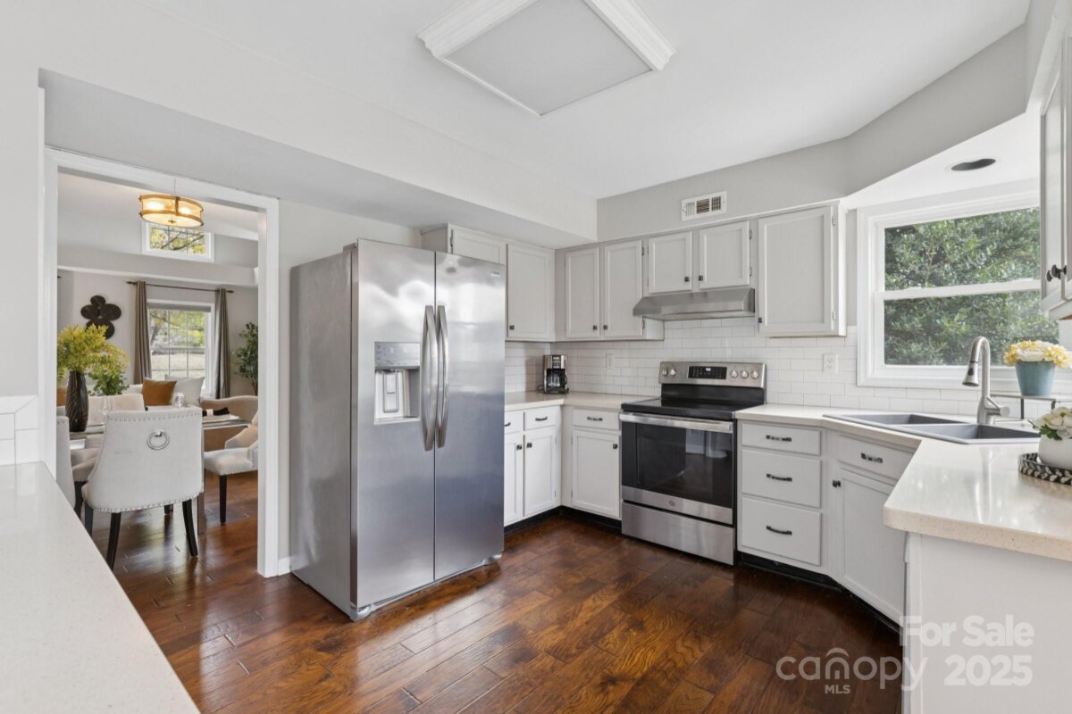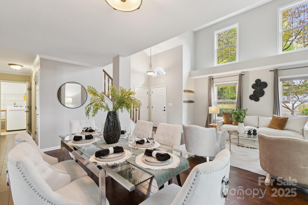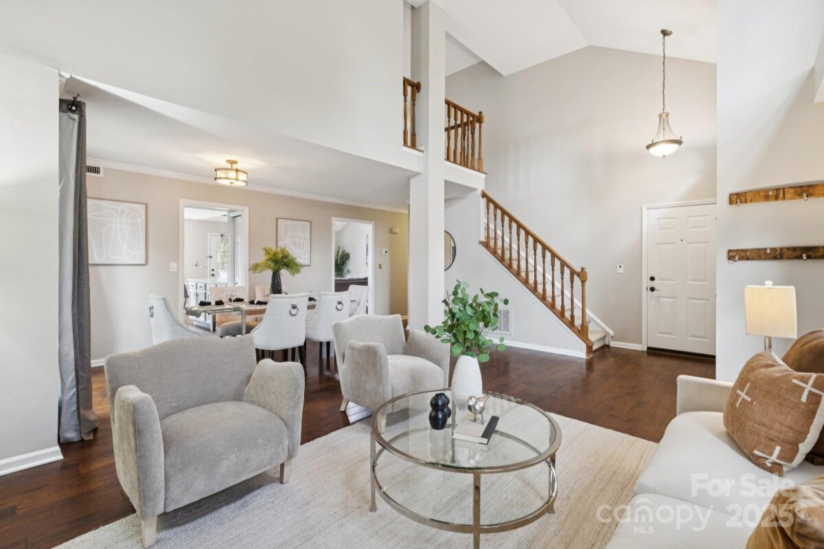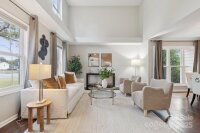 This updated beauty sits on a premium corner cul-de-sac lot across from a multi-million-dollar equestrian neighborhood and shows like a model! Inside, the living room boasts soaring two-story ceilings with walls of windows, while the great room features a slanted two-story ceiling with skylights. Hardwood floors run throughout the main level, and the kitchen offers Corian countertops, a breakfast bar, painted cabinets, subway tile backsplash, and two oversized windows overlooking the backyard. Refrigerator, washer, and dryer all convey. The main-level primary suite features vaulted ceilings, a large half-circle window with green views, and French doors leading to a screened porch/sunroom. The spa-like bath includes a huge double-sink granite vanity, soaking tub, frameless shower, separate water closet, and walk-in closet. Upstairs offers a bedroom suite with renovated bath and barn door, two more bedrooms, a spacious landing, and a catwalk with wood spindles overlooking the great room. Recent updates include: new HVAC, new 50-gallon water heater, newer appliances, fresh paint, patio expansion with pergola, new lighting throughout, new granite sink, faucet, and hardware, new shower base and toilets, new blinds, siding repairs, oven vent, and more. Outside is a gardener’s paradise with raised garden boxes already planted with vegetables and herbs plus compost stations. Well maintained and thoughtfully updated, this home blends modern style, comfort, and a peaceful neighborhood setting, move-in ready and waiting for you! One Year Home Warranty Included! Complete improvements and features list available in the media section, please ask your agent for a copy.