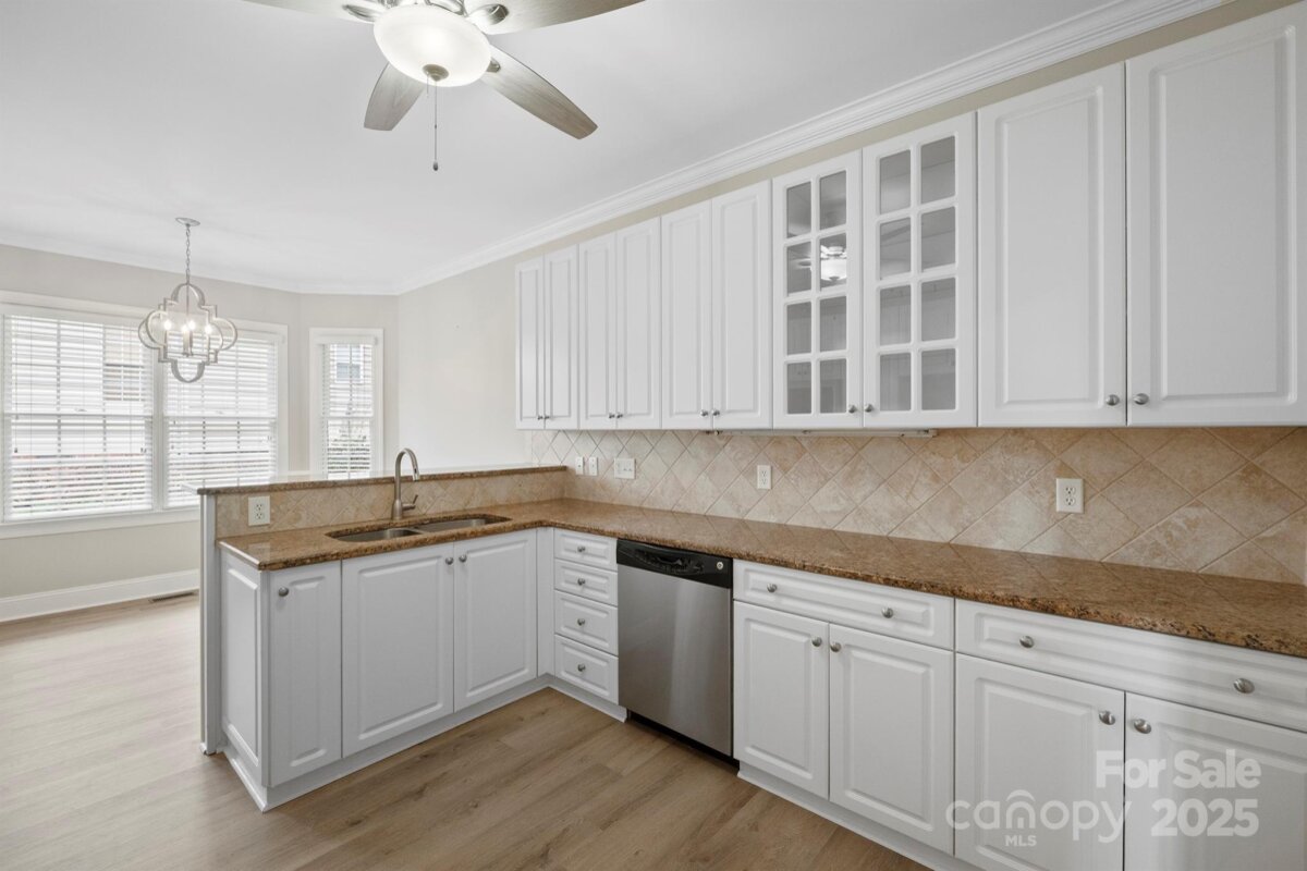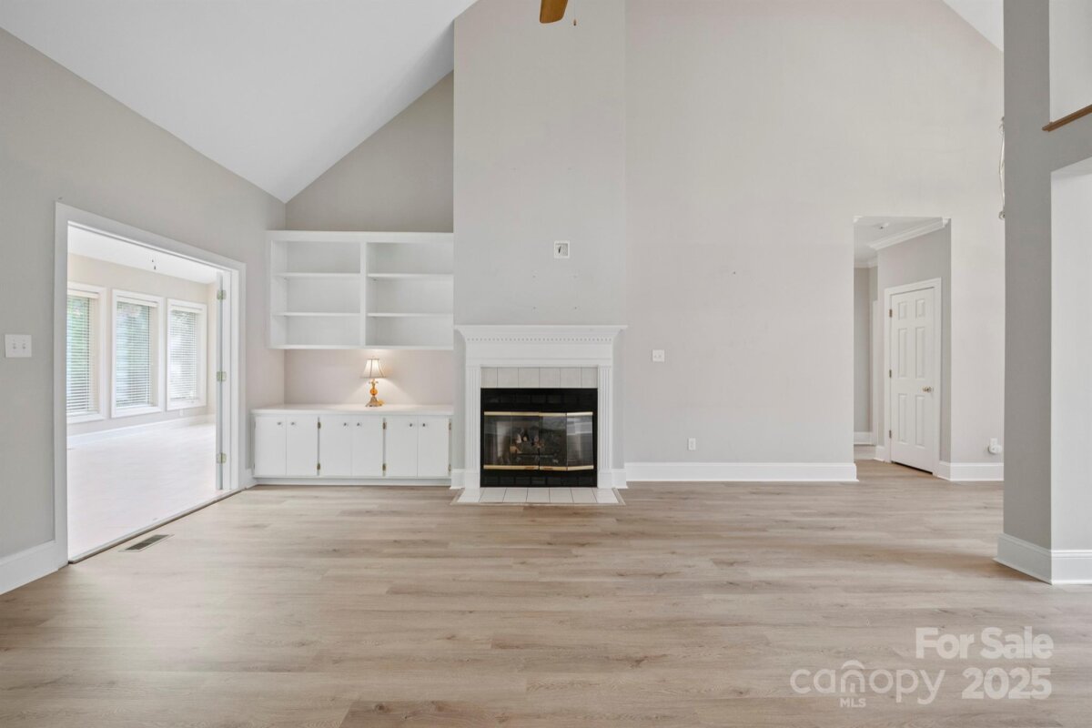 Move-in ready home in desirable Colony Woods! One-level living with a split bedroom floor plan, neutral décor, brand NEW vinyl plank flooring & NEW carpet. Spacious great room offers gorgeous soaring ceilings, a gas log fireplace (with blower), built-ins, and a lovely, defined dining room area. Beautiful sunroom addition opens to a private, quaint back patio & yard. The kitchen features granite countertops, tile backsplash, stainless steel appliances, a breakfast nook, and a breakfast bar. The spacious primary suite boasts TALL tray ceilings & ensuite bath with a dual sink vanity, jetted tub, separate shower, and tile flooring. Two additional bedrooms (on the other side of the home) share a full hall bath with a dual sink vanity & tub/shower combo. Separate laundry closet in the hallway. Double garage with pull-down attic access, with some flooring for storage. The home includes a Generac generator &  2 HVAC systems. Roof new in 2021. Sunrm was added in 1999. In pristine condition & ready for a new owner! Convenient location to shopping, schools, & more!