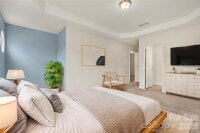 Bright & Spacious 3 bedroom home in the heart of Downtown Clover. This home is all about location - less than 1 mile to Roosevelt Park and the Clover Flea Market, and just over 1 mile to the local library, shops & restaurants in the center of town. Close to everything while providing you the peace and quiet of this family friendly neighborhood. Home welcomes you in with open living plan featuring spacious carpeted living room opening up to dining area and kitchen. Kitchen has large center island, matching black appliances, and tons of dark cabinets + pantry for plenty of storage. Upstairs greets you with a loft landing area great for a media space, play area, or home work station. Oversized primary bedroom has charming porthole window plus side area perfect for a reading nook or sitting area. Attached ensuite features soaking tub & stand-up glass shower + dual sinks & walk-in closet! 2 additional bedrooms & full hall bath perfect for family or guests. Enjoy relaxing outside in your low-maintenance backyard. Patio area great for grill overlooks wooded space - the ideal privacy barrier! Property features spacious 2 car garage for endless storage space. All of this close to everything and inside the fantastic Clover School District!