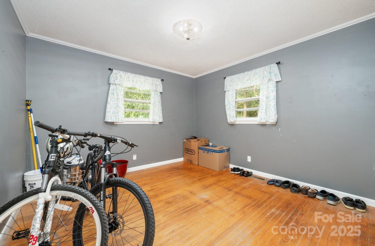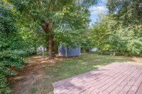 Welcome to quiet and cozy living. Enjoy no HOA and living just minutes from downtown Rock Hill. This brick ranch home features a level yard for easy lawn upkeep, a flower box, mature shade trees, front and back decking, a detached storage shed or shop, additional attached storage space, a 2023 year roof, and a chain link partially fenced in back yard. Inside you will fall in love with the original hardwood floors in the living room and bedrooms. The kitchen features Formica counter tops, LVP flooring, a small dining area, bar area seating, and the laundry closet. This home is perfect for modest and minimal living. We will soon be ready for you to take a tour.