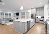 Stunning 3,637 sq ft Barringer Homes build (2023) featuring a rare primary on main layout in the heart of Plaza Midwood. Located just steps from the expanding Briar Creek Greenway and Gold Line, this home offers walkable access to the restaurants, breweries, and retail that make this vibrant neighborhood so desirable. The primary suite features a vaulted shiplap ceiling with beams, a spacious bath with soaking tub and separate shower, and a walk-in closet with space for a stackable washer and dryer. The main level also includes a full bath and a flexible room ideal for an office or guest space. A dramatic two-story foyer with statement staircase and oversized windows fills the home with natural light. The open floor plan centers around a beautifully designed kitchen with KitchenAid gas range, custom cabinetry, pantry, and designer finishes. Enjoy outdoor living with a screened porch with fireplace, paver patio, and a private 74’ wide fenced backyard lined with mature trees.