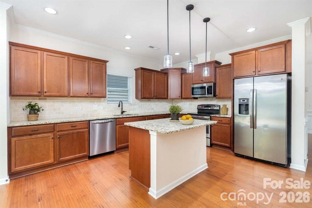Welcome to this stunning 5-bedroom, 3-bathroom home in the highly sought-after Fort Mill School District, offering the perfect combination of modern style, functionality, and location. Thoughtfully designed with hardwood floors on the main level, this home boasts a seamless flow between living and entertaining spaces. Step into the elegant dining room, accented by a timeless chandelier and detailed millwork, perfect for gatherings or everyday meals. The heart of the home is the chef’s kitchen, showcasing granite countertops, tiled backsplash, stainless steel appliances, pendant lighting, and a large center island ideal for cooking, entertaining, or casual dining. The kitchen opens to a spacious family room filled with natural light and anchored by a cozy fireplace. A convenient guest bedroom and full bathroom are located on the main floor, offering privacy for visitors or flexibility as a home office. Upstairs, retreat to the expansive primary suite featuring a walk-in closet, double vanity, garden tub, and separate shower for a true spa-like experience. The second level also includes three additional bedrooms and a large bonus/loft space, perfect for a media room, playroom, or second living area. Outside, enjoy a fenced-in backyard with plenty of room to relax, garden, or entertain. A two-car garage provides additional storage and parking convenience. Situated in Fort Mill, South Carolina, this home offers easy access to I-77, shopping, dining, and everyday conveniences while being part of one of the area’s top-rated school districts. Move-in ready and beautifully maintained, this home is ready for its next owner to enjoy immediately.