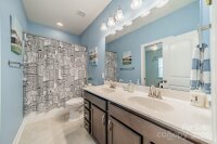 This inviting home in the highly sought-after McCullough neighborhood greets you with a spacious front porch and timeless curb appeal. Inside, the open floor plan features wood flooring, 10’ ceilings on the main level, and 9’ ceilings upstairs. A gracious foyer leads to the dining room and a main level guest suite for added convenience. The light-filled kitchen offers an island, gas cooktop, stainless steel appliances, a walk-in pantry, and a breakfast room. It opens into the great room with a fireplace and built-ins—an ideal space for everyday living and entertaining. A drop zone at the back door completes the main level. Upstairs, the luxurious primary suite features dual vanities, a soaking tub, separate shower, and a generous walk-in closet. Two additional bedrooms, a full hall bath, and a laundry room complete the second floor. Outdoors, the fenced backyard provides privacy for relaxing on the custom patio and lawn, while the HOA includes front yard maintenance for truly easy living. The McCullough community has it all—two pools, playgrounds, clubhouse, pickleball and tennis courts, dog parks, a fitness center, charming pocket parks and walking trails link the neighborhood to parts of the Greenway system. Zoned for the brand-new Ballantyne Ridge High School and just minutes from Downtown Pineville’s shopping, dining, and conveniences, this home combines comfort, community, and location in one remarkable opportunity. Come see for yourself what makes this home—and McCullough living—so special. Welcome home!