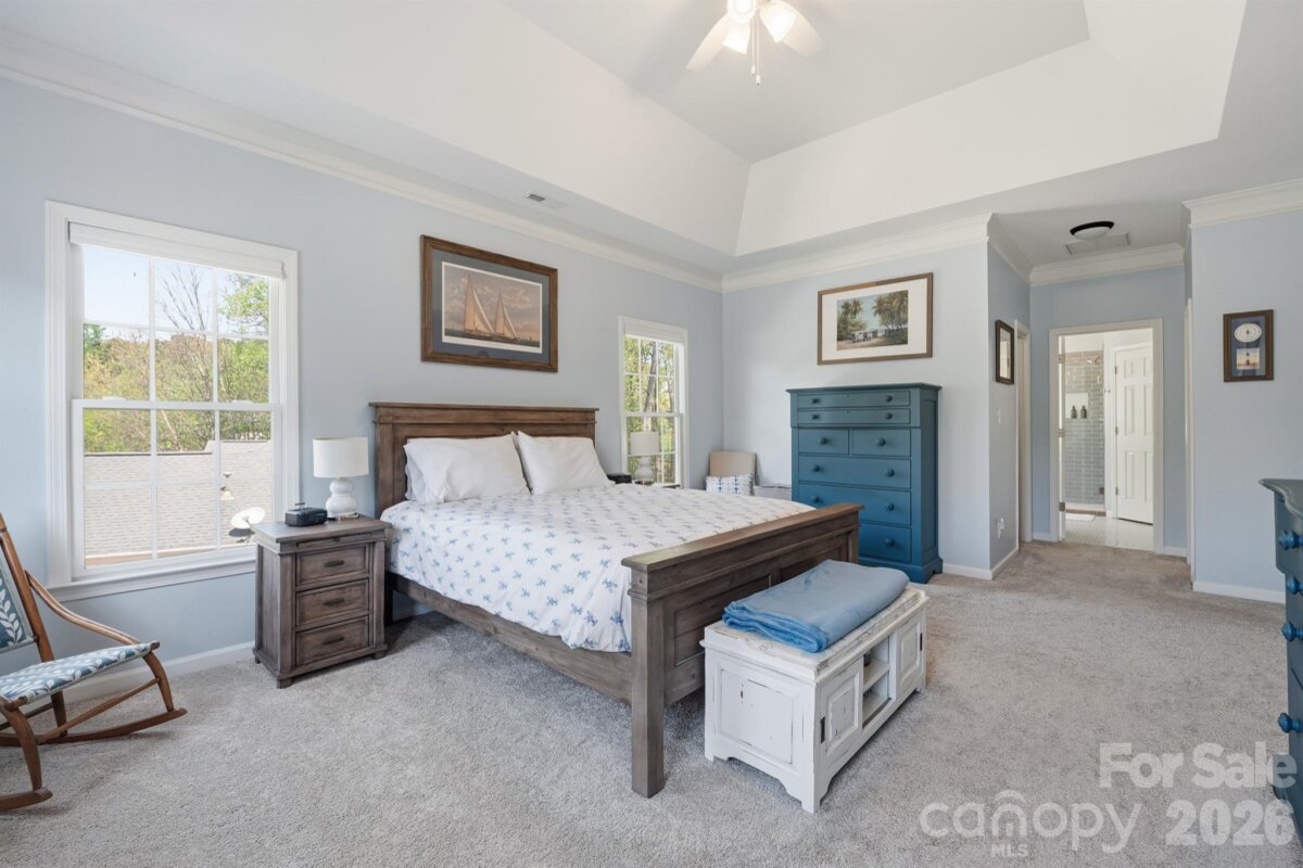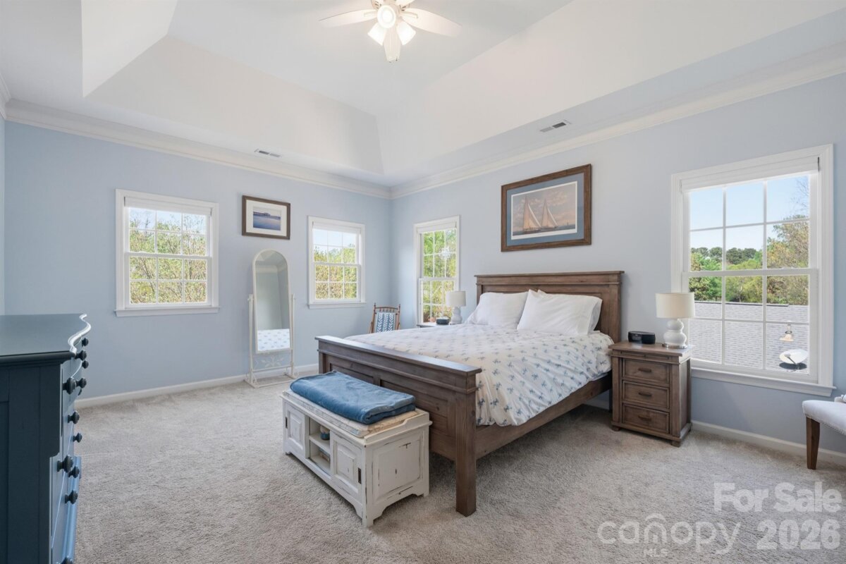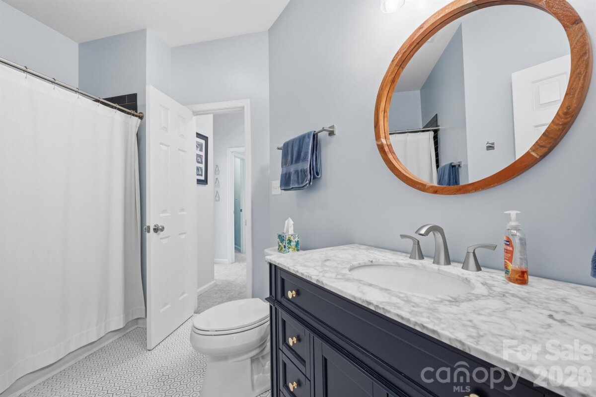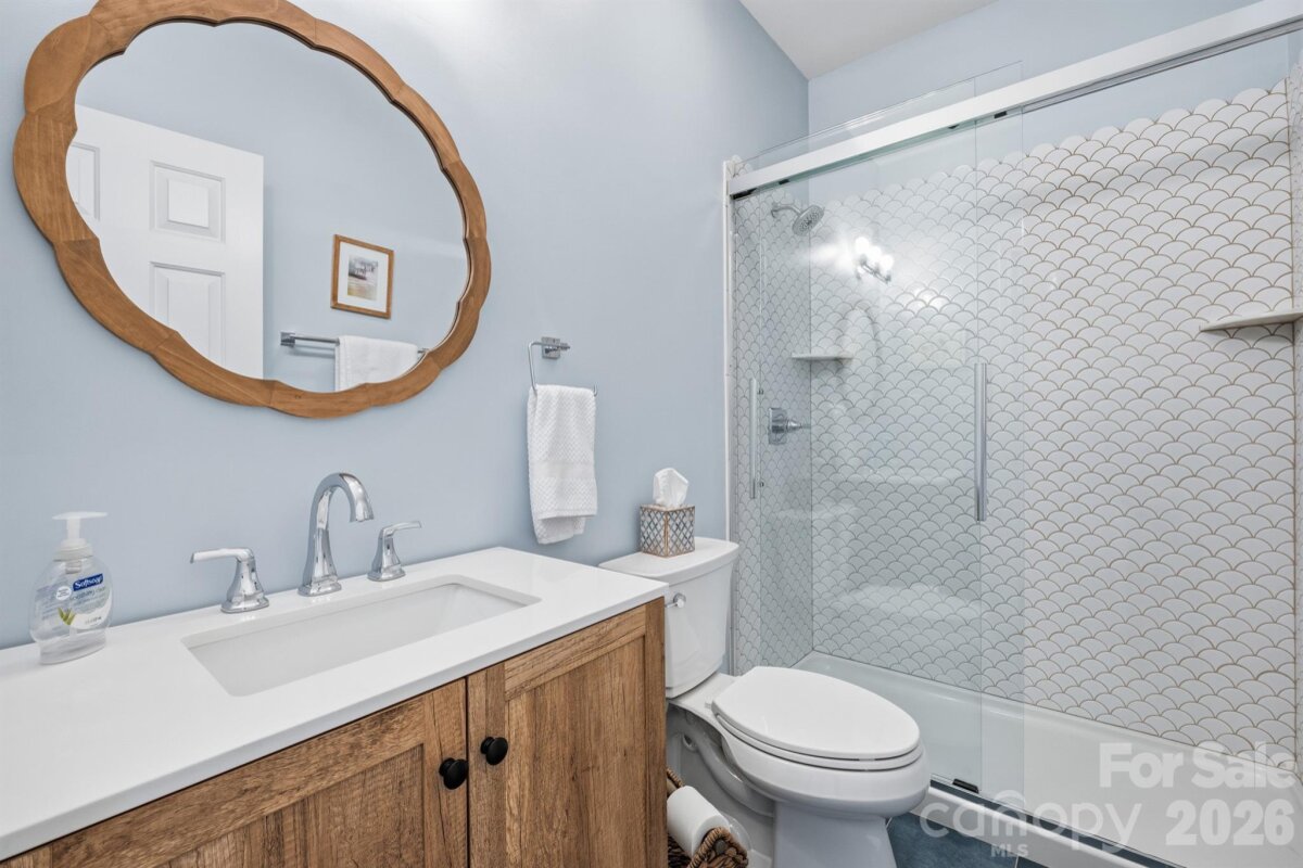 Welcome to this gorgeous fully updated and meticulously maintained home on a private 0.5 acre wooded lot in highly desirable Fernbrook community in Mooresville! Inside, you’ll find a striking two-story foyer featuring an upgraded wood stairway with elegant craftsmanship, along with crown and chair moldings and upgraded wood flooring that continue throughout the main level, adding architectural character to the home. The spacious living room seamlessly flows into the dining room, creating an ideal layout for entertaining and everyday living. The stunning two-story family room with a whitewashed gas fireplace creates a warm, inviting space ideal for everyday living and entertaining with an abundance of natural light! The fully renovated kitchen shines with quartz countertops, a farmhouse sink, new appliances, pantry shelving, new fixtures, soft-close cabinets and drawers, and a large new island with cabinets on both sides providing tons of storage! And the breakfast area with a bright bay window is perfect for both casual meals and hosting gatherings. The main-level bedroom with updated full bathroom with step-in shower is perfect for guests, or it can also serve as an office or bonus room (it does not have a closet). Upstairs, enjoy new carpet and the primary bedroom featuring a tray ceiling and crown molding that creates an open/airy feel, large his and hers closets, and a beautifully upgraded spa-like bathroom featuring a large tiled shower, double sink quartz top vanity, and modern fixtures. The second floor also features two additional generously sized bedrooms, an additional fully updated bathroom, and a versatile bed/bonus room with large walk-in closet and extra storage closets that make it ideal for a playroom or game room. The conveniently located second floor laundry room also contains ample storage and attic access. Additional updates include new ceiling fans, light fixtures, outlets, switches, thermostats, doorknobs, smoke detectors, attic insulation, and custom window shades throughout. Outdoor living is just as impressive with a private covered back porch, new pressure treated deck, new landscaping with retaining wall, and a new 10x16 Old Hickory shed. Other major improvements include BRAND NEW ROOF (2026), hot water heater (2024), crawlspace encapsulation with French drain, sump pump, dehumidifier, and new floor insulation (2023). Also enjoy wonderful Fernbrook community amenities including a pool, boat ramp, boat storage lot (subject to waitlist), and boat slips for lease (when available)—perfect for Lake Norman living. This home offers the ideal blend of updates, privacy, and location - ready for you to enjoy! Located just off Brawley School Road - minutes from shopping, dining, entertainment, and Lake Norman Elementary School, Brawley Middle School, Woodland Heights Middle School, and Lake Norman High School! Don’t miss out on this gem!!