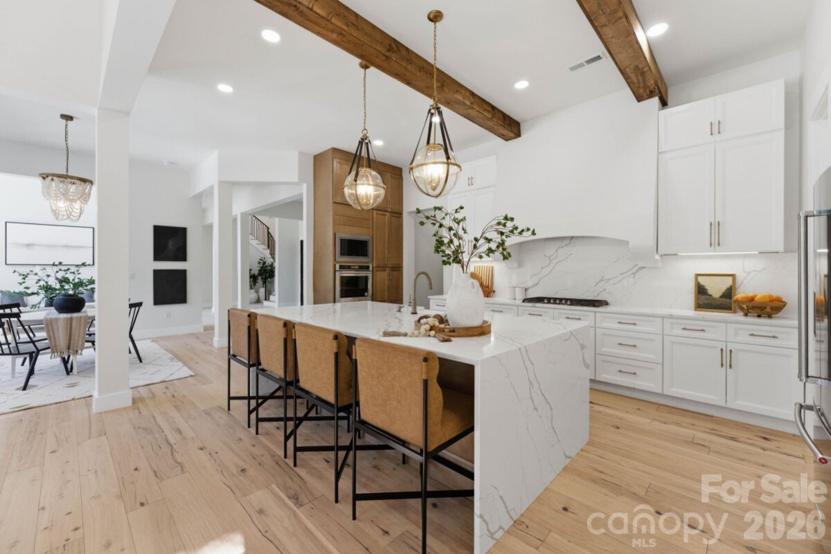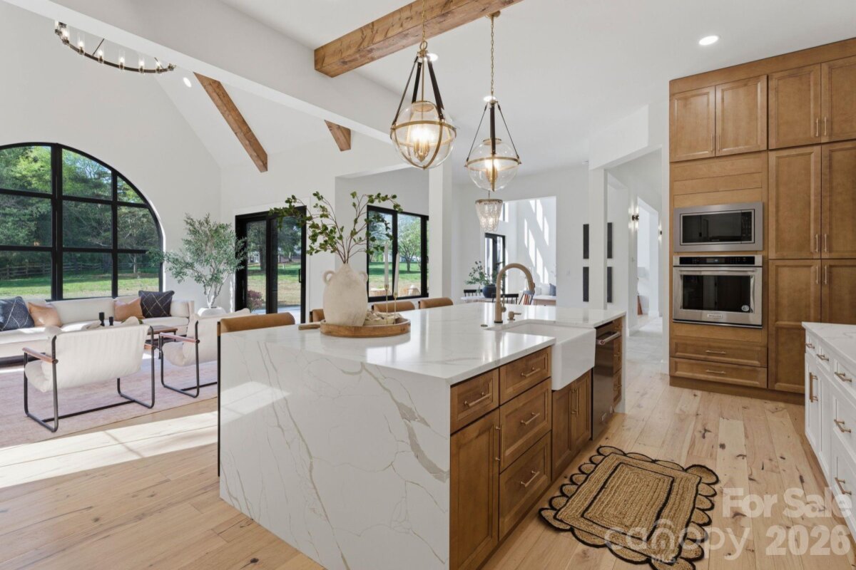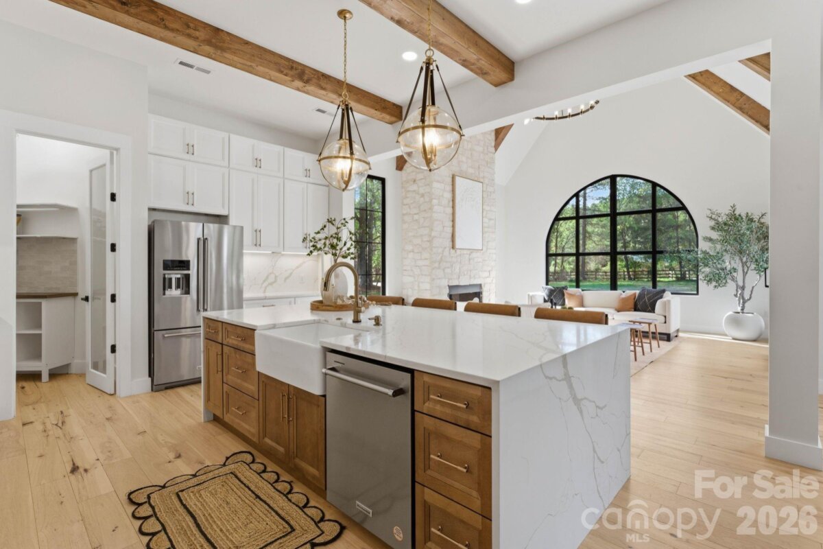 Luxury meets location in this stunning newly built home on 1.62 acres in Queens Cove near Langtree/Lake Norman. Designed with both elegance and comfort in mind, this residence welcomes you with beautiful European tile and an airy open floor plan highlighted by soaring ceilings and abundant natural light. Every detail showcases exceptional craftsmanship, featuring premium natural materials including limestone, oak hardwood floors, marble, and custom European tile in the mudroom. At the heart of the home, the chef’s kitchen is a true showpiece complete with quartz countertops, a gas range, soft-close cabinetry, and a walk-in pantry, perfect for both everyday living and entertaining. The primary suite offers a serene, spa-like retreat designed for ultimate relaxation. Each additional bedroom includes its own private en-suite, thoughtfully designed with distinctive custom tile, giving every space a unique character. Enjoy the flexibility of optional HOA membership along with convenient lake access. This home truly offers the perfect blend of luxury living and the lake lifestyle.