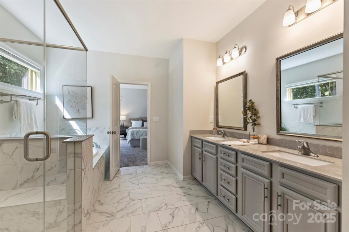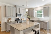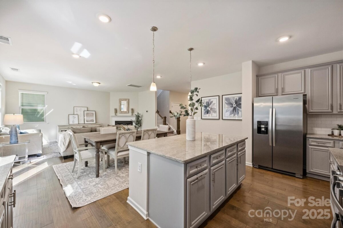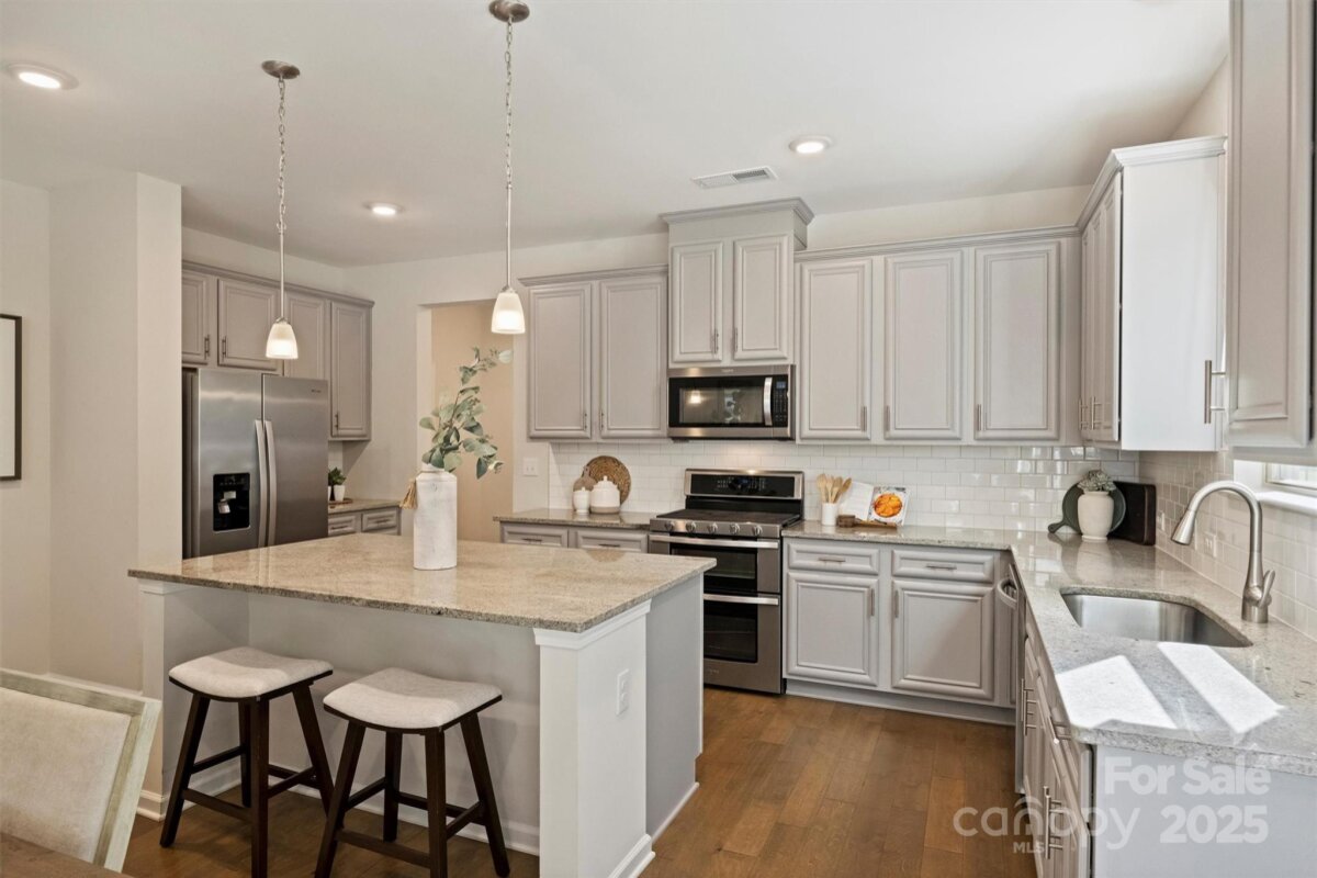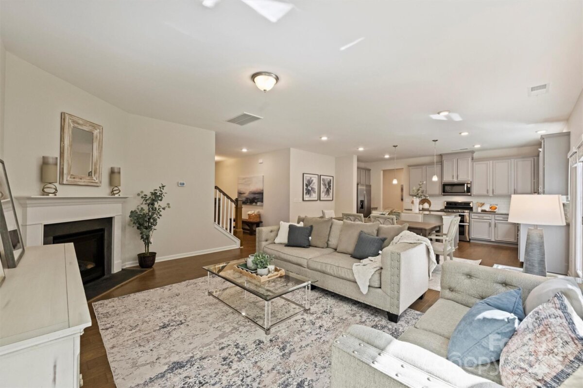 Beautifully designed floor plan showcasing open-concept living! The spacious kitchen features granite countertops, a large central island, double ovens, and 42-inch cabinetry. The family room is centered around a cozy gas fireplace, creating the perfect gathering space. A main-level bedroom and full bath offer ideal guest accommodations or the perfect study space. Upstairs, the owner’s suite impresses with dual vanities and a generous walk-in closet. Two additional bedrooms provide excellent storage and large closets, complemented by a versatile loft and convenient second-level laundry. Filled with natural light throughout, this home also offers a fully fenced backyard perfect for outdoor living!