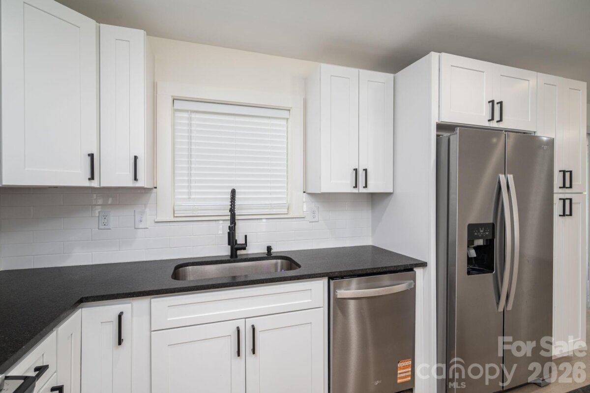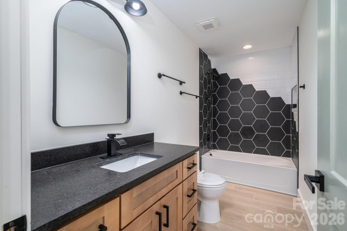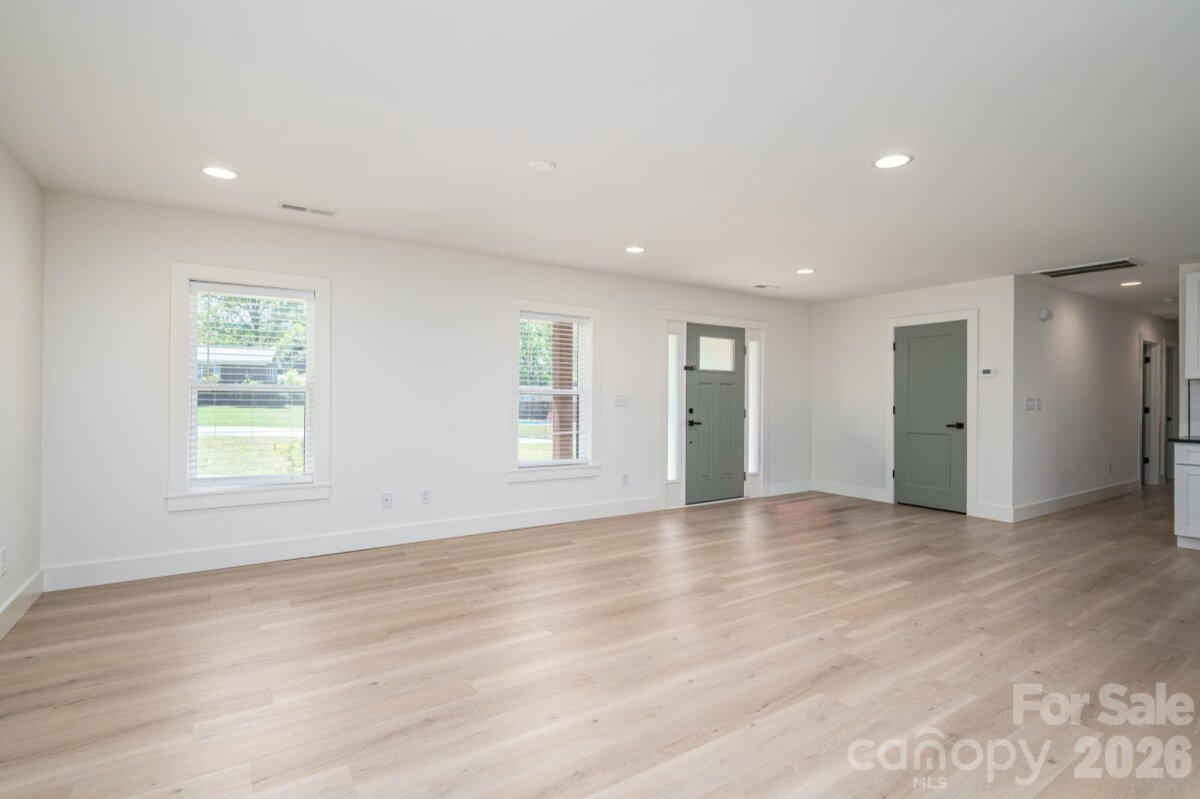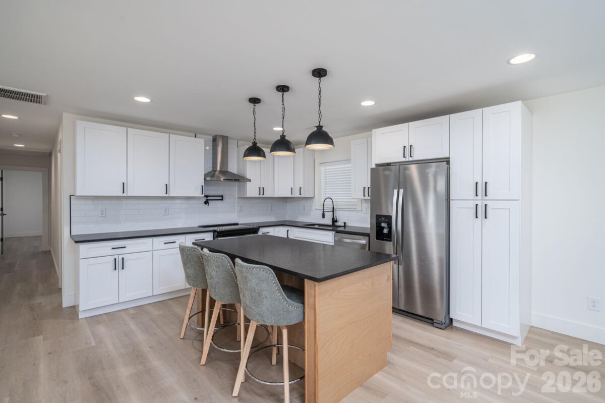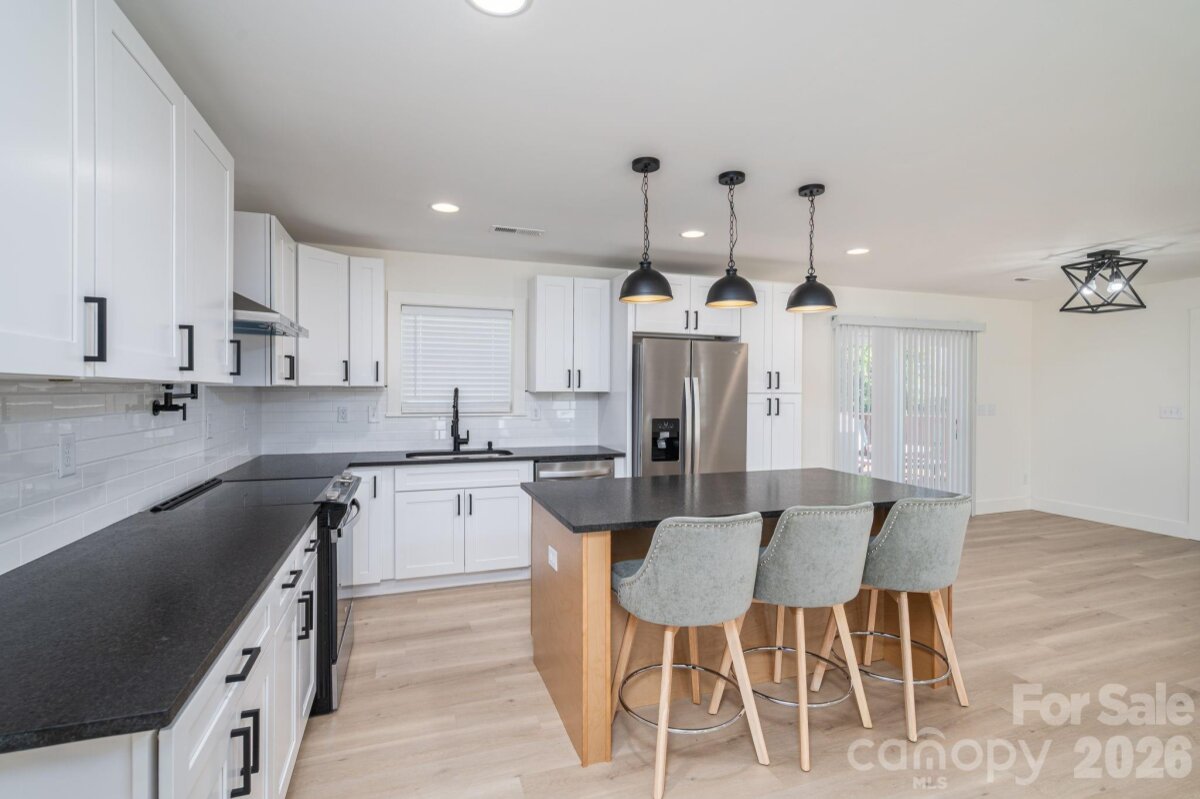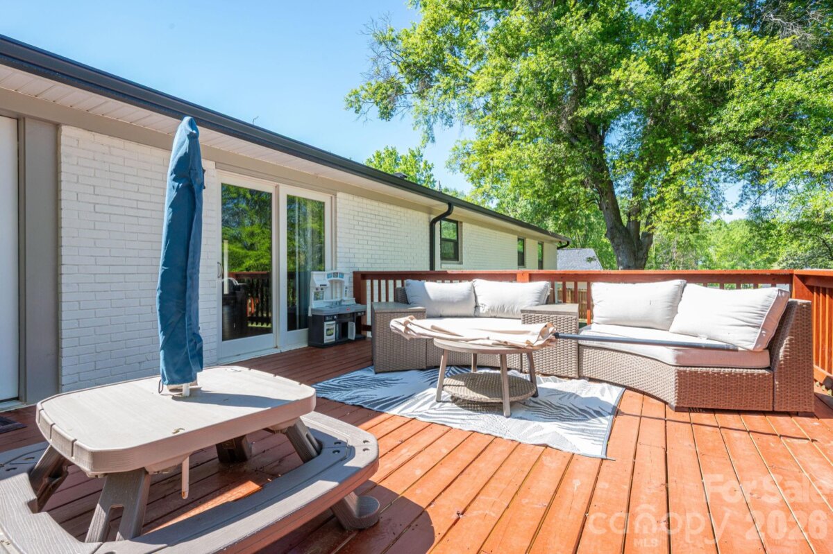 This 1,722 square foot brick ranch home boasts 3 spacious bedrooms and 2 bathrooms, offered for sale. The expansive deck, accessible from the dining room, provides an expansive outdoor living area with picturesque views of the backyard. Strategically located near highway 74 on a substantial .45 acre lot, this property features a durable 30-year architectural shingle roof installed in 2025 and a modern 2025 HVAC system. The completely renovated interior showcases soft-close shaker kitchen cabinets with durable quartz countertops, complemented by stainless steel appliances. New LVP flooring throughout the home provides a sleek finish, while custom tile showers in both bathrooms demonstrate exceptional craftsmanship. The primary bedroom features a spacious 12 by 6.5 walk-in closet. SCHEDULE YOUR SHOWING TODAY!