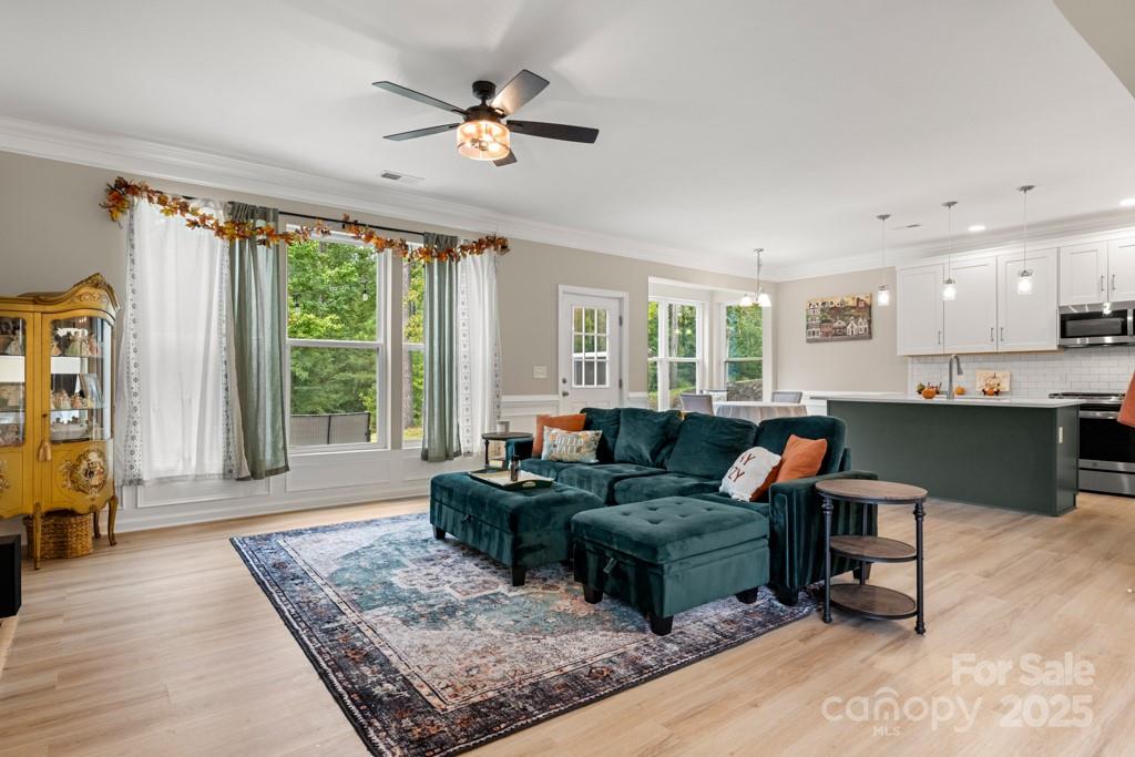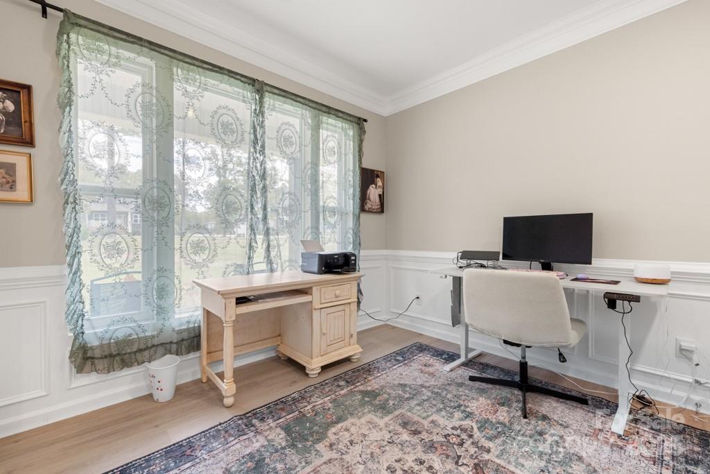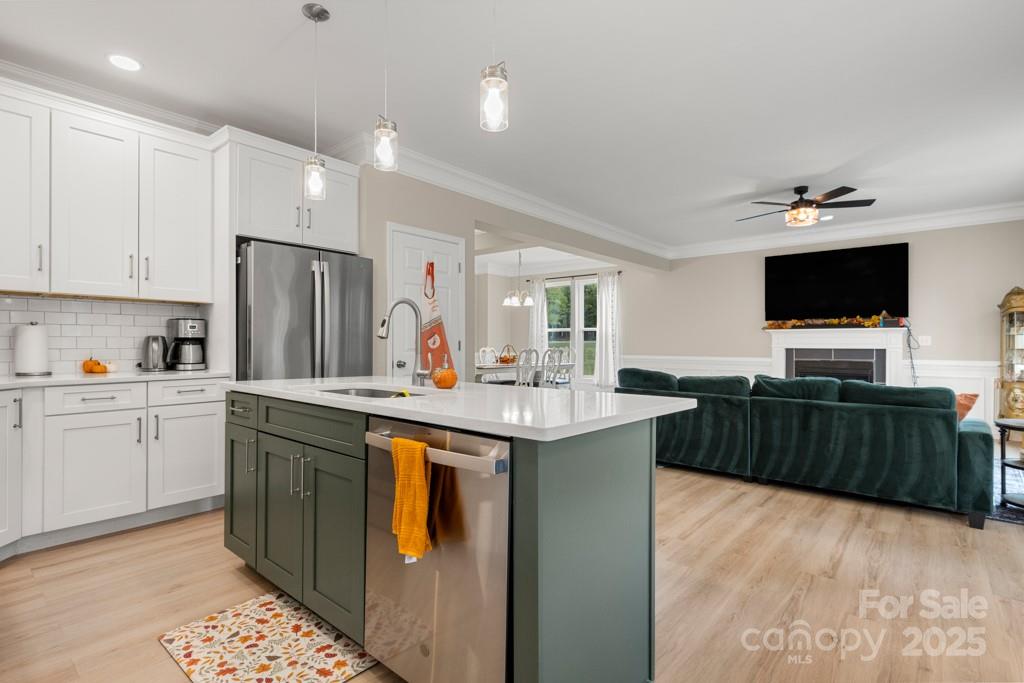 Step into modern Farmhouse living with this stunning 2023-built home designed for comfort, style, and fun! The open floor plan flows effortlessly, featuring a spacious great room with a cozy fireplace that connects seamlessly to the dining and breakfast areas—perfect for hosting everything from casual brunches to lively gatherings. Need a quiet spot to focus? The dedicated home office has you covered. Car enthusiasts, hobbyists, and organizers will love the versatile tandem 3-car garage—use it for three vehicles or as a 2-car setup with your own workshop or storage space. Outdoors, your private patio overlooks peaceful woods, offering a serene retreat for morning coffee or evening get-togethers. All of this is just minutes from Lake Wylie’s waterfront fun, plus convenient shopping and dining nearby. Stylish, spacious, and made for both work and play—this is the home you’ve been waiting for!