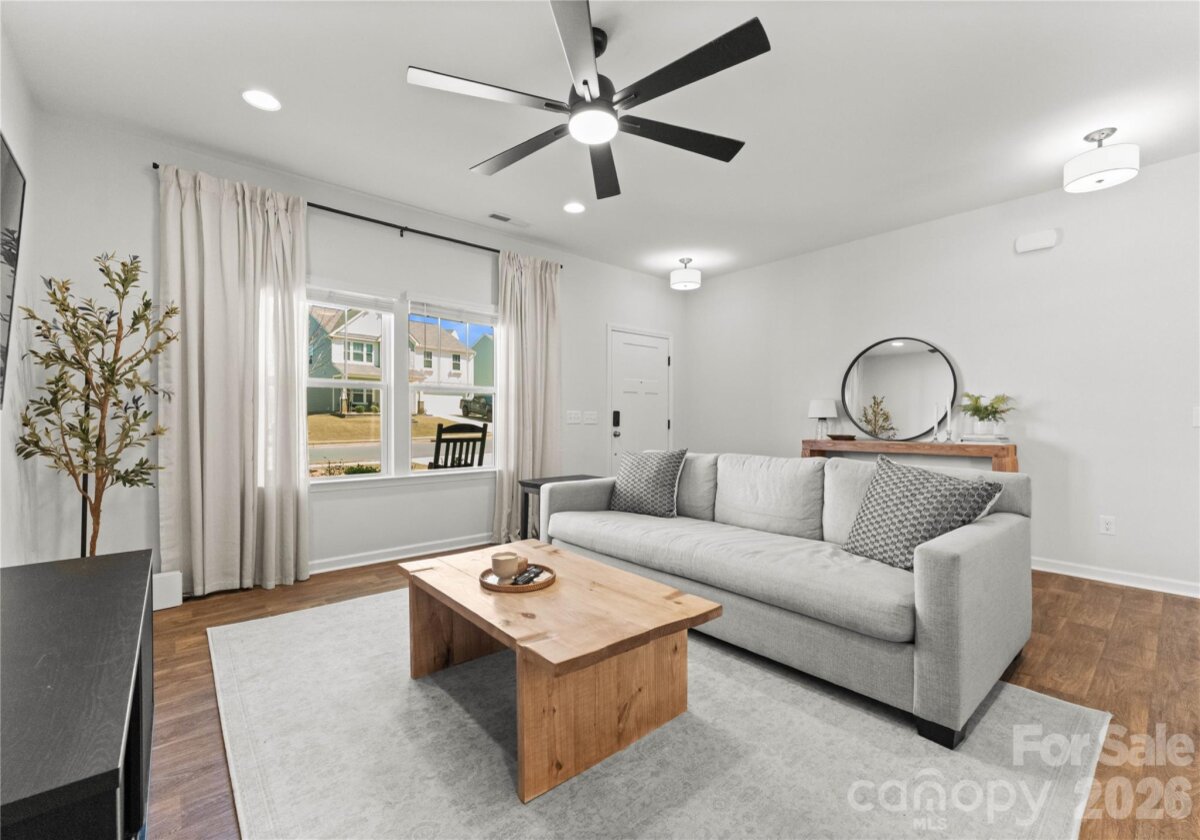 Tucked into a quiet Statesville community, this nearly new home offers the perfect blend of modern comfort and peaceful surroundings. With over 2,100 square feet of thoughtfully designed living space, the open floor plan creates a natural flow for both everyday living and entertaining, with bright, welcoming spaces that feel connected and inviting from the moment you walk in. Upstairs, a versatile loft provides additional living space that can easily serve as a home office, playroom, or cozy reading nook. The spacious primary suite offers a true retreat, featuring an upgraded walk-in shower and a layout designed for comfort and privacy. Three additional bedrooms provide plenty of room for family, guests, or flexible living needs. Step outside and you’ll discover one of the home’s standout features: a large, fenced backyard backing to protected wooded space. The covered patio creates the perfect spot for morning coffee, outdoor dinners, or simply unwinding while enjoying the quiet natural backdrop and added privacy. Built in 2024, the home offers all the advantages buyers love about newer construction—modern finishes, energy efficiency, and the peace of mind that comes with minimal maintenance for years to come. Conveniently located just minutes from downtown Statesville, with easy access to I-77 and a short drive to Lake Norman, you truly get it all with a move-in ready home that combines modern living, community amenities, and a peaceful natural setting.