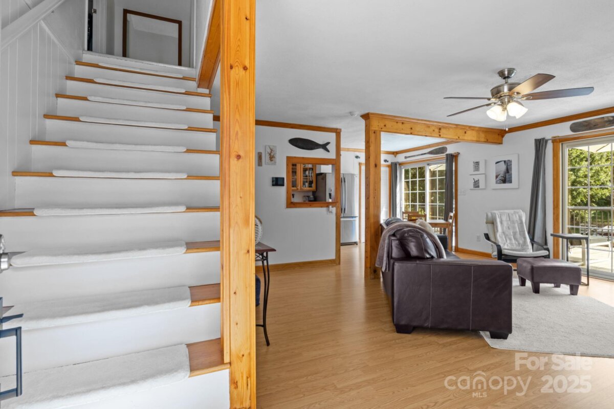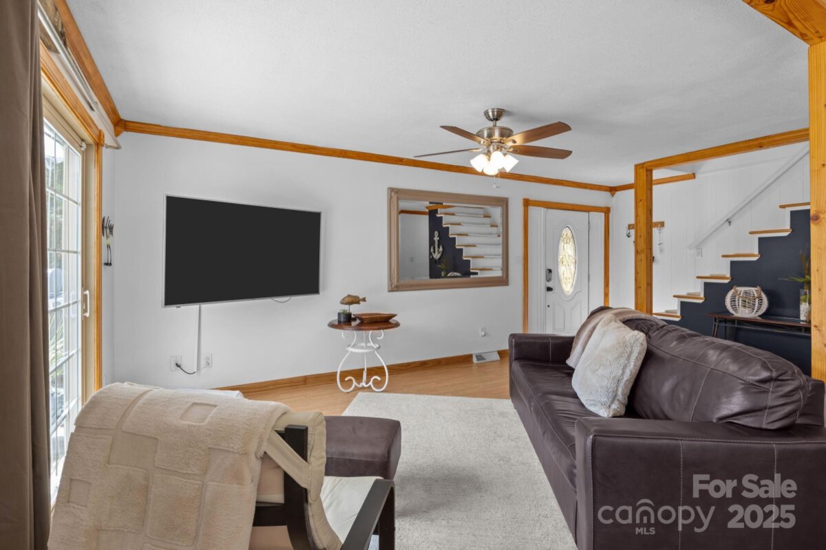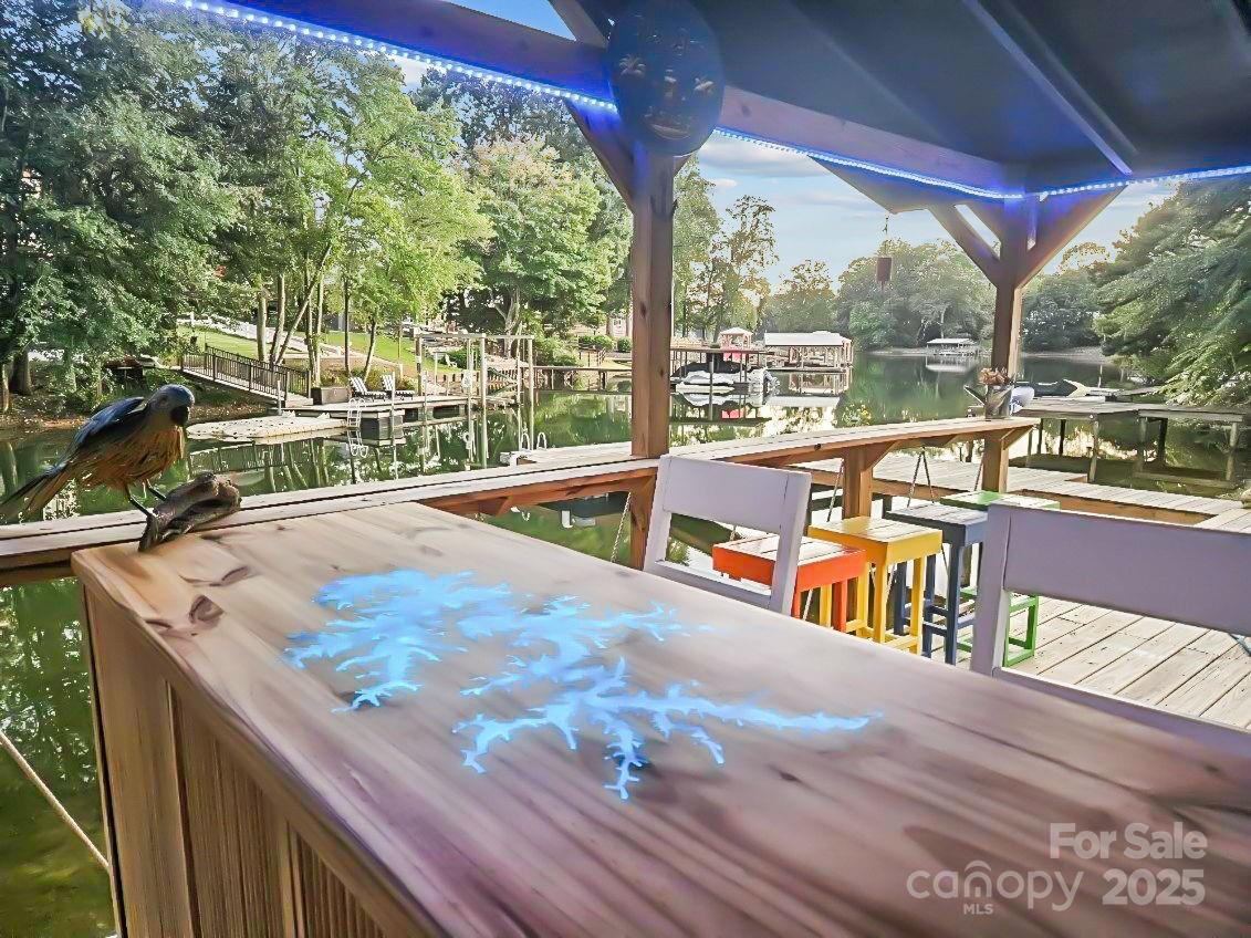 Escape to this charming waterfront home tucked away in a quiet cove, perfect for relaxing weekends or year-round living. Enjoy 52 feet of shoreline, complete with a brand-new floating dock, retaining wall, and a huge gazebo with a built-in epoxy covered bar and tambour door cabinets—ideal for entertaining while watching TV, listening to music or simply taking in the view. Inside, the home offers 3 bedrooms, a small bonus room with closet, a cozy family room, and a newly built walk-out deck with water views. The walk-out basement extends your living space with a covered porch, beautifully landscaped flat backyard, and a fully fenced lawn to secure your furry family members. Downstairs also features a second kitchen, den, and versatile flex space currently used as an office & man cave —perfect for guests or extended stays. With a brand-new cooling system just installed (Sept 2025), this property is move-in ready and designed for comfort and fun. Whether you’re looking for a VRBO investment, vacation getaway, or second home, this waterfront gem is a rare opportunity to enjoy lakeside living at its best.