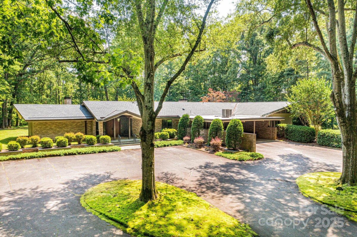 A true one-of-a-kind property, this custom-built hilltop home sits on 2.8 private acres surrounded by mature trees. Originally crafted in 1963 for a member of the Broyhill Furniture family. This elegant mid-century modern was designed by acclaimed architect Aiji Tashiro to showcase stunning views & effortless indoor-outdoor living. Over 7,000 sq ft of living space. The main level includes formal DR, 2 generous living areas, & spacious eat-in kitchen w/new appliances. The primary suite is a private retreat with an en-suite bath, oversized dressing room, & sitting area. 4 additional BRs & 3 full BAs & library with its own full BA presents the option for 2nd primary suite. The lower level adds flexible finished space ideal for a game room, home office, gym, or media room. Built with the highest quality craftsmanship—from the solid foundation to the enduring slate roof—this home is truly a legacy property.
