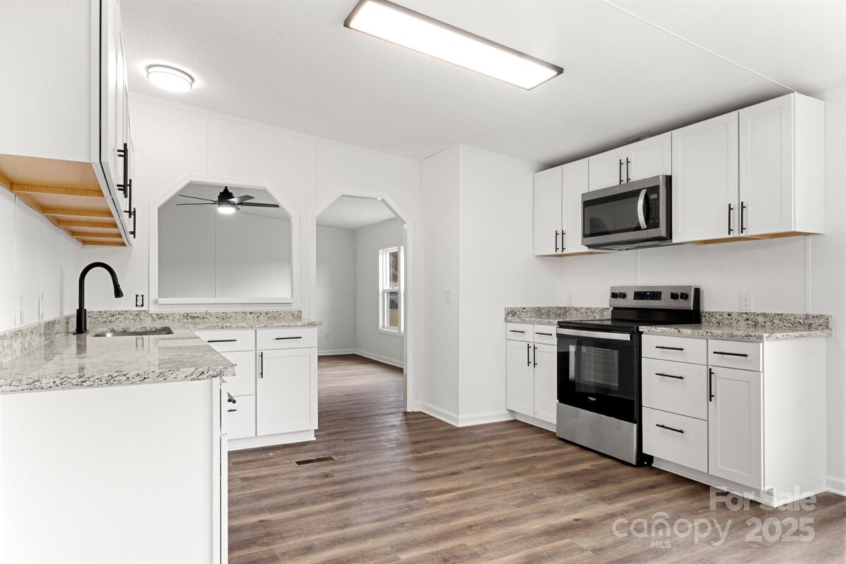 Quaint home newly updated and ready for you! Walk into the home onto NEW LVP flooring throughout! Great Room is a good size and has a little "window" into the kitchen! Kitchen is STUNNING w/white shaker cabinets, Granite Countertops, and NEW SS Dishwasher, Microwave, and Range. Dining area perfectly fits a table for 6! SPLIT Floorplan! Primary Suite is off the Great Room; it is an AWESOME size and features a ceiling fan & full bathroom w/dual granite vanity, tub/shower combo, and linen closet. Both guest beds are ample in size and share the additional full bath w/single granite vanity & tub/shower combo. OUTSIDE: The yard is OPEN and spacious! Side deck perfect for grilling, fully fenced back yard, and small shed! This home has lots to offer, come check it out today!