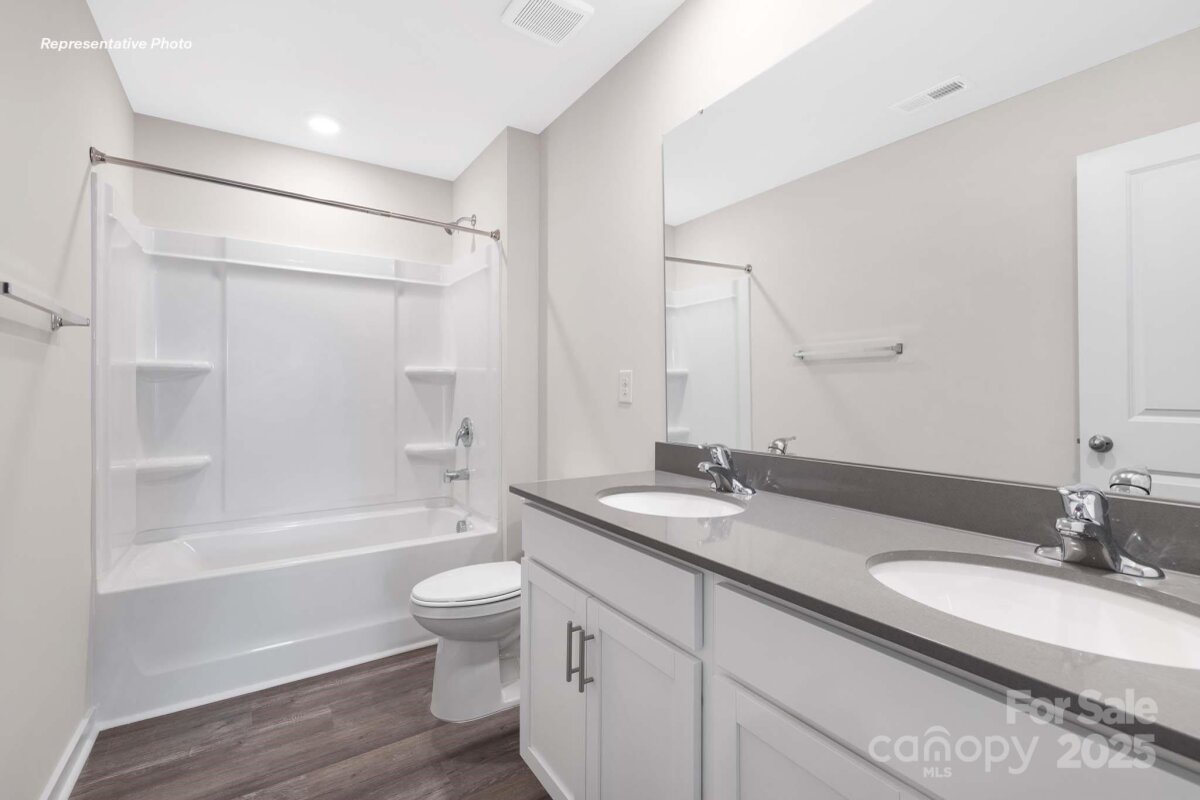 Secrest Commons is located minutes from Historic downtown Monroe and convenient to shopping and restaurants. The Robie is a spacious & modern two-story home offering 5 bedrooms, 3 baths, & two-car garage. Upon entering, a wide foyer invites you into the center of the home. There is a spacious living room & dining room that blends with an island kitchen equipped with modern appliances, ample cabinet space, quartz CT's, walk-in pantry, & breakfast bar, perfect for cooking & casual dining. Adjacent to the kitchen is a guest bedroom and bathroom with 5ft. shower. The home features a primary suite upstairs, complete with a walk-in closet & en-suite bathroom featuring dual vanities. The additional three bedrooms are spacious & have access to a secondary bathroom. The loft offers a flexible living space. The laundry room completes the second floor. With its thoughtful design, spacious layout, & modern features.