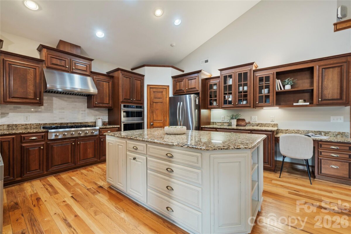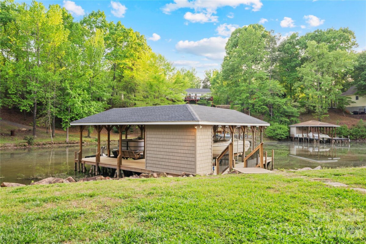Rare and remarkable gem! Spanning 4.49 acres on the shores of Lake Tillery, this exceptional estate showcases a rare mix of wide-open land, generous waterfront, and quiet seclusion. Welcome to a property where timeless elegance meets the ease of lakeside living. With over 4,700 square feet of thoughtfully curated space, this residence offers a refined yet inviting atmosphere designed for both elevated entertaining and quiet, meaningful moments. The main level unfolds with warmth and understated sophistication, as natural light pours into expansive living spaces and fireplaces create an inviting ambiance from the moment you enter. At the heart of the home, a beautifully appointed kitchen features a generous island, custom cabinetry, breakfast bar, and premium appliances—perfectly suited for everything from intimate dinners to effortless entertaining. Just beyond, the main-level primary suite serves as a serene retreat with a spa-inspired bath and peaceful views that invite you to unwind. A sunroom, private office, and additional gathering spaces complete the main level, seamlessly blending comfort and function with timeless style. Below, the basement is designed with both relaxation and versatility in mind. Offering 3 bedrooms and 3 full baths, this level is ideal for hosting guests or accommodating with ease. A spacious den with fireplace, wet bar, recreation areas, and a dedicated exercise room create a private haven for leisure, wellness, and entertainment. Outdoors, the property transforms into a true lakeside sanctuary. A stunning saltwater in-ground pool anchors the backyard, creating a tranquil setting for sun-drenched afternoons and relaxed evenings under the Carolina sky. Expansive decking and covered porches provide seamless indoor-outdoor living, inviting you to gather, dine, and take in the gentle water views at every turn. Your private boathouse with lifts offers effortless access to the lake, where days can be spent boating, fishing, or simply enjoying the calm of the water. Surrounded by mature trees, open pasture, and additional outbuildings, the property offers both privacy and endless possibilities. This is more than a home—it is a place where luxury feels effortless, where every detail invites you to slow down, and where life on the lake becomes part of your everyday rhythm.