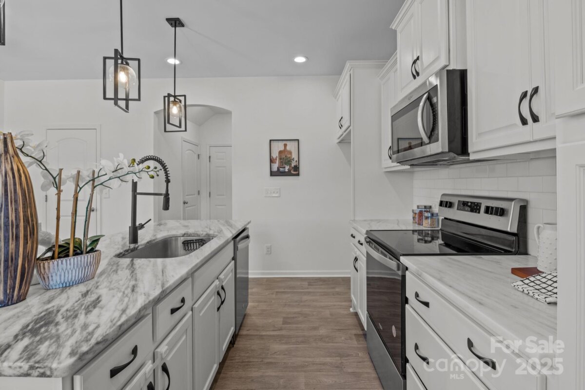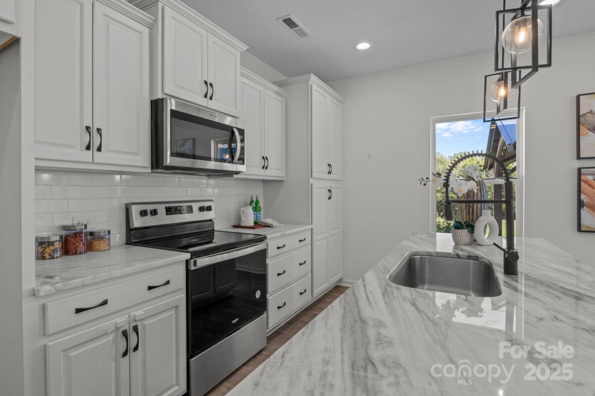 Welcome to the home that you've been waiting for in desirable Sutter's Mill-Troutman! Sip your morning coffee on the covered front patio and start your day in comfort. Inside, the open layout and flexible spaces let you make the main level your own — whether that’s a cozy home office, playroom, or relaxing lounge. The modern eat-in kitchen features granite countertops, stainless steel appliances, and plenty of storage, making it both stylish and functional. Upstairs, the spacious primary suite offers a private retreat with a dual-vanity bath. You’ll also find a convenient laundry area with a washer, dryer, and folding table, plus two additional bedrooms and a full hall bath. The loft adds even more versatility — perfect for a movie night, game space, or quiet reading nook. Out back, enjoy peaceful views with no rear neighbors — this home backs up to permanent green space. The covered pergola and extended patio make it an inviting spot for entertaining or unwinding. Located in the charming Sutter’s Mill community, you’ll love the sidewalks, green spaces, and easy access to Lake Norman, Troutman ESC Park, local dining, shopping, and I-77 for a quick drive to Mooresville or Uptown Charlotte.