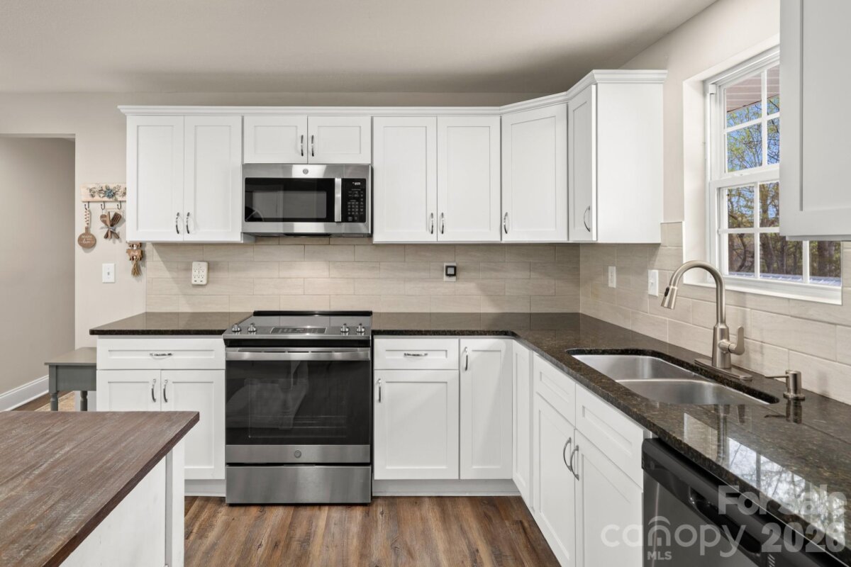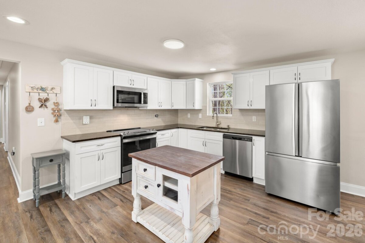 Recently renovated with new cabinets, countertops, flooring and appliances, and previously updated with all new plumbing and electric along. 154 Shadowgate is meticulously maintained and has a remarkable floor plan with large pantry, and laundry room, along with four bedrooms and two full bathrooms with tall windows providing lots of natural light. An attached garage and tandem carport provides covered parking for three vehicles. Outside there is a brand new 12' x 20' accessory building with iron wood stove currently used for woodworking, but can be utilized for many purposes. Enjoy the quiet solitude at the end of this dead-end street with nature abound. Gather on the back deck and hear the birds sing and have room for play on this nearly half acre, virtually level lot. Although you feel like you are in the country, you are just a short distance to shopping, restaurants, grocery stores and Forest City's award-winning, Main Street America downtown, known for its historic charm, tree-lined median, and vibrant "small town friendly" atmosphere, and you are just blocks away from the Isothermal Trail, a 13.58-mile, paved, multi-use path connecting Gilkey and Forest City in Rutherford County, North Carolina. The trail follows a former railroad corridor and is popular for walking, biking, and running, often utilized for commuting between the communities of Gilkey, Rutherfordton, Spindale, Ruth, and Forest City. Open House Saturday, April 4 from 12:30-2:30.