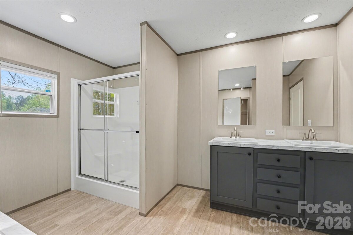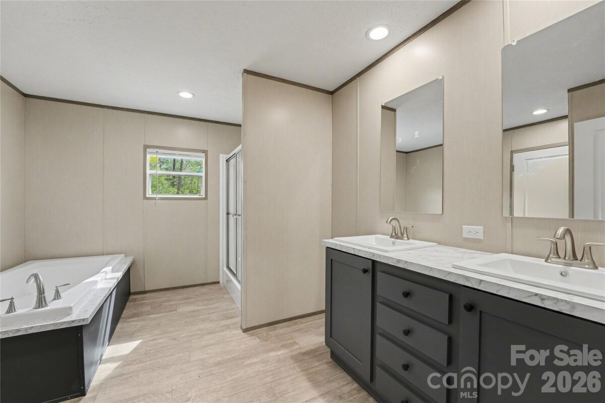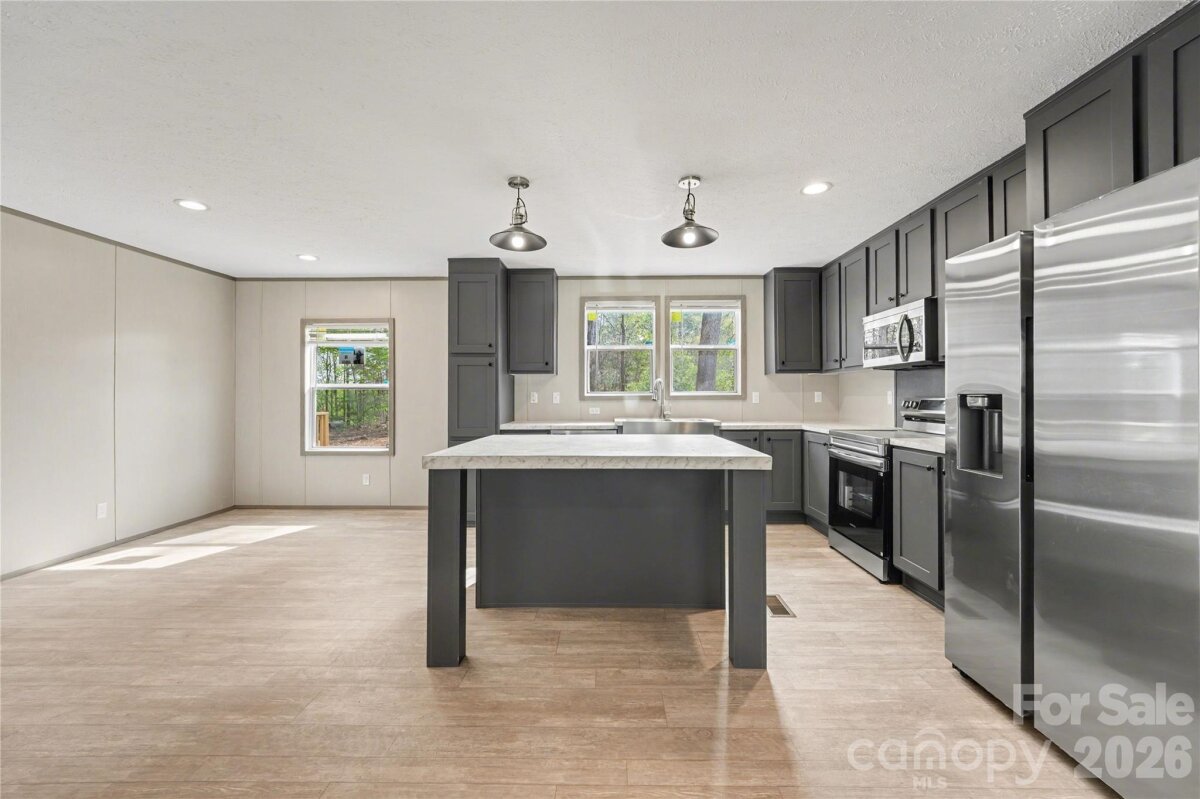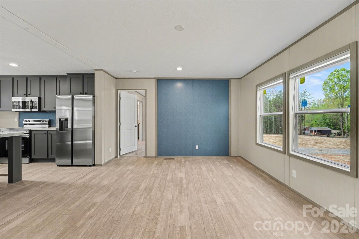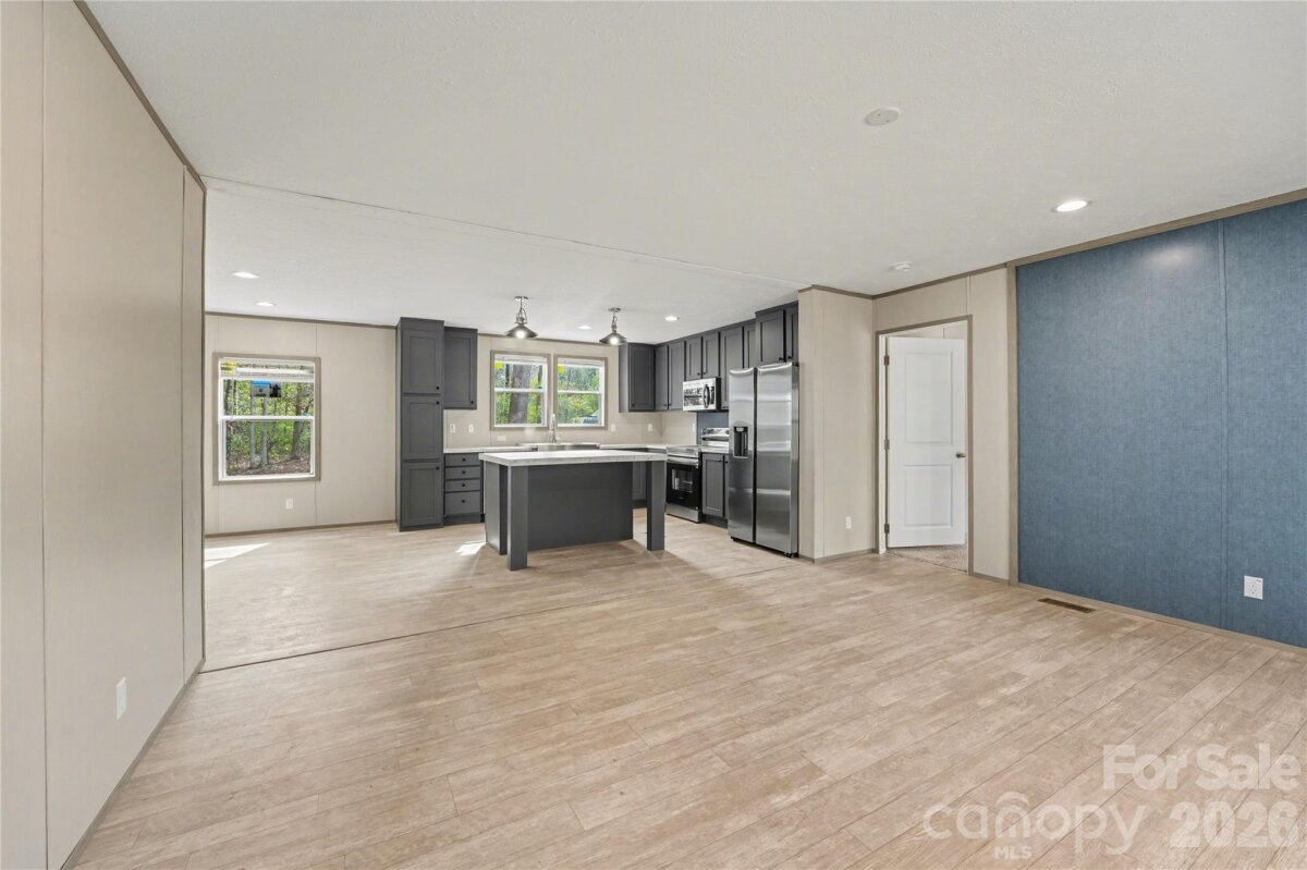 Welcome to this beautifully designed 3 bedroom, 2 bathroom manufactured home offering 1,369 square feet of modern, open-concept living. From the moment you step inside, you’ll appreciate the spacious layout, natural light, and upgraded finishes throughout. The kitchen is a true centerpiece, featuring a large island, stainless steel appliances, and ample cabinet space perfect for both everyday living and entertaining. The open flow into the living and dining areas creates a bright and inviting atmosphere. The primary suite offers a private retreat with a walk-in closet and a well-appointed en-suite bathroom complete with double vanity, soaking tub, and separate shower. Secondary bedrooms are generously sized, providing flexibility for guests, office space, or hobbies. Situated on a spacious lot and conveniently located approximately 2 miles from I-77, this home offers the perfect balance of comfort and accessibility for commuters.
