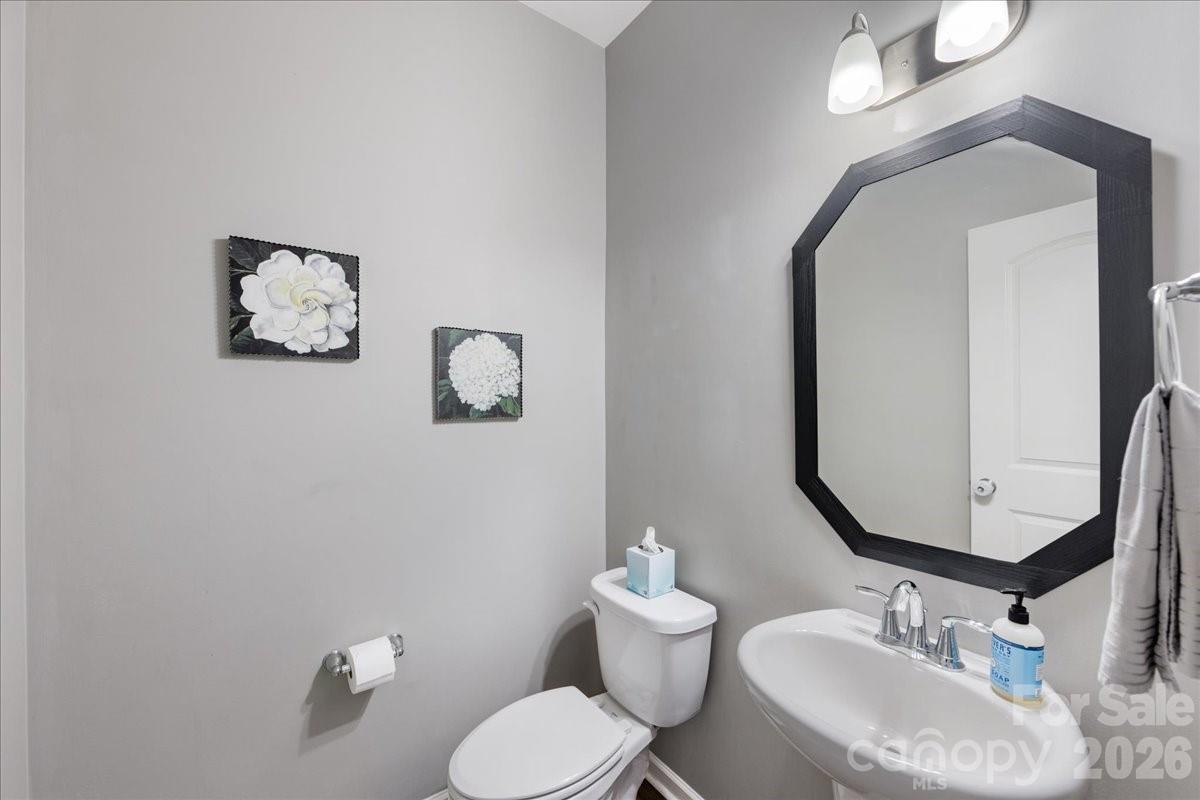 Welcome to this beautifully appointed 3-bedroom, 2.5-bathroom home offering almost 2,700 SQ FT of thoughtfully designed living space in the popular Sutters Mill community of Troutman! Nestled across from a community green space with a covered front porch to take it all in, this move-in ready home impresses from the moment you arrive. Inside, arched doorways & neutral tones with tasteful pops of color set a warm, inviting tone. The kitchen is a true centerpiece — featuring granite countertops, SS appliances, rich warm cabinetry, & an oversized island perfect for gathering & a charcuterie board. A formal dining room with butler's pantry, a spacious great room, & a flexible main-level bonus room for an office, gym, or additional place to sleep round out the main floor. Upstairs, a large loft, 2 secondary bedrooms, & a beautiful primary suite with sitting area, recessed lighting, walk-in closet, double vanity, & glass-door shower offer the perfect retreat after a long day. Step outside to your screened porch & patio overlooking serene wooded views, with a fully-fenced backyard & paver sitting area made for cool Carolina evenings by the fire pit. Community amenities include walking trails, a community garden, & RV/boat parking. Perfectly positioned between Statesville and Mooresville with easy access to I-77 (3 miles), Downtown Troutman (4.9 miles), Daveste Vineyards (6.8 miles), & Lake Norman State Park (8.7 miles). Come experience it for yourself!