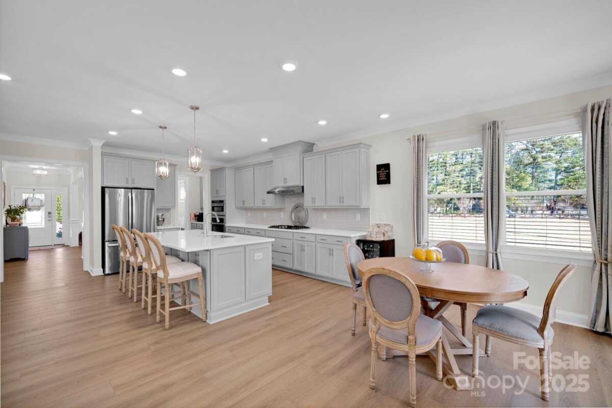 Why wait to build? Stunning 5 Bedroom, 4 Bath home on a 1.7 acre lot in Huntersville! This home offers a host of upgrades: a formal Dining Room with 38" Wainscoting, Crown Moldings and Cased Openings to Stylish Black Frame Windows with tinted glass. The Gourmet Kitchen offers an Oversized Island, Quartz Countertops, Gas Cooktop with an Undercabinet Hood, a built in Microwave and Stove and a pass-through Butler's Pantry. Family Room has a Fireplace and French Doors leading to a Covered porch to enjoy your morning coffee or for entertaining. Main Level also has a Guest Bedroom with a Full Bath. Upstairs features a generous sized Bonus Room, a Spacious Owner's Suite and a Spa-Like Primary Bathroom with an Oversized Shower and 2 Rain Shower Heads. This home also offers an abundance of storage and closet space. The Oversized Garage is perfect for bikes, toys or a workshop area and there is also an additional parking pad alongside the extended driveway. This home is still under Builder Warranties to provide extra security and comfort for its new owner. Please note: There is a proposed road widening project on NC 73. Please ask the Listing Agent for more details. Buyers Agents Welcome!