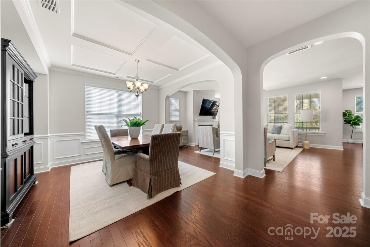 Welcome to Luxury Living in The Palisades! Sitting on a serene, tree-lined lot, this beautiful home invites you in with a charming rocking-chair front porch and elegant curb appeal. Step inside to discover dark hardwood floors flowing throughout the main level and freshly painted neutral tones that fill the space with natural light. The gourmet kitchen is a chef’s dream, seamlessly connecting to the bright dining area and spacious living room. A bedroom and full bathroom on the main floor offer ideal flexibility for guests or a home office. Relax year-round in the screened-in sunroom overlooking the private, wooded backyard. Upstairs features a versatile loft area, large bonus room, convenient laundry room, and four well-sized bedrooms — including an oversized primary suite with a sitting area, grand walk-in closet, and luxurious en-suite bath. The finished basement adds exceptional living space, complete with two bonus rooms, a dedicated bedroom, a full bathroom, and walk-out access to a covered patio. There’s also ample unfinished storage space for organization and expansion. Enjoy the flat backyard backing to an Audubon Society protected wooded area, providing natural beauty and privacy. Located in the desirable Palisades community, residents enjoy resort-style amenities including a pool, clubhouse, fitness center, sport courts, and paved trails. Conveniently close to shopping, restaurants, major highways, and Lake Wylie, this home offers both tranquility and accessibility. Financial Highlights: Exceptional value at only $163.71 per square foot (compared to nearby homes at $164.56–$197/sqft). Contact listing agent for information on OWNER FINANCING with LOW interest rate and NO PMI. This is more than just a home — it’s a lifestyle. Don’t miss this once-in-a-lifetime opportunity to own a stunning Pacific Homes-built property in one of Charlotte’s premier communities.