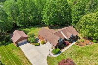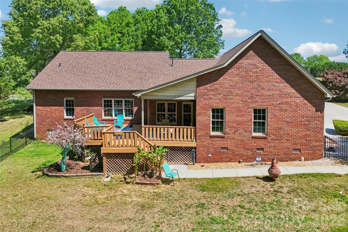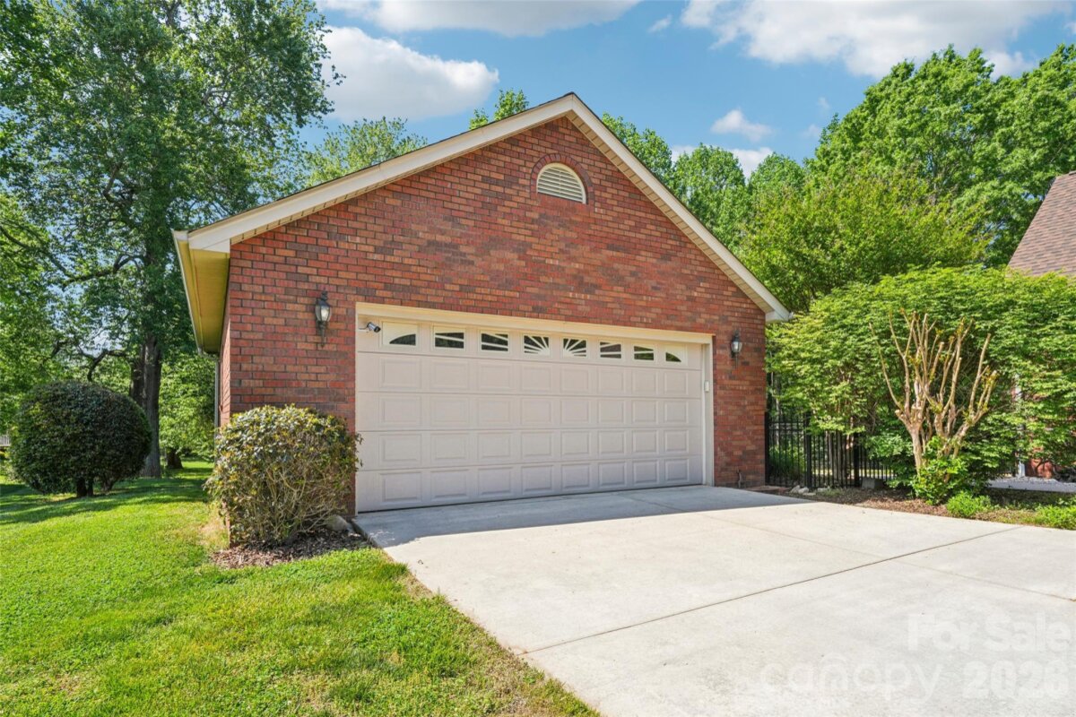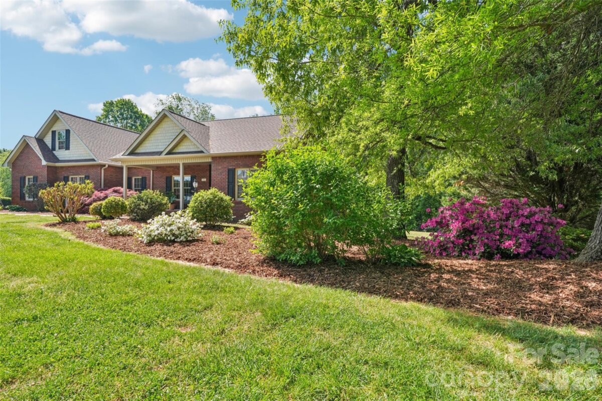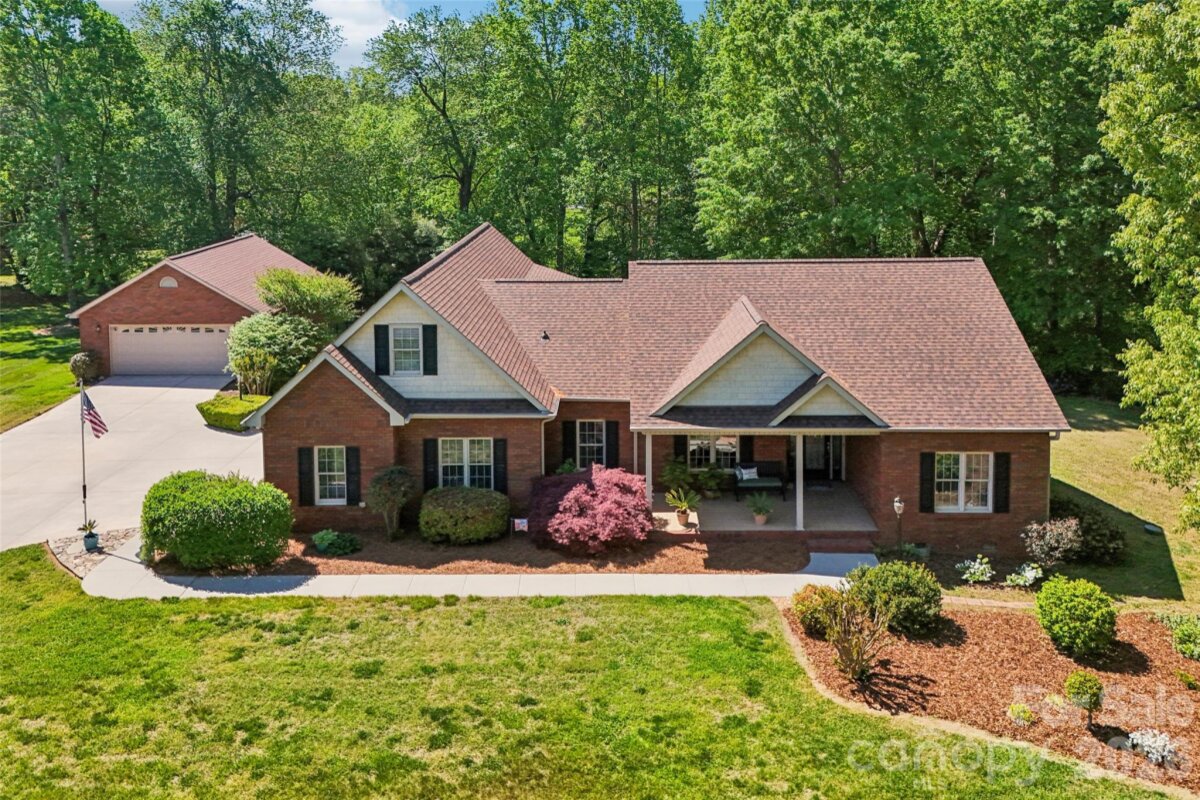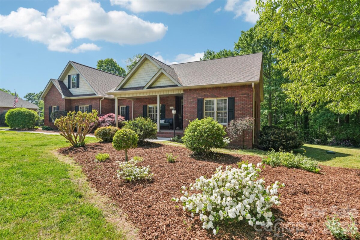 Welcome to this amazing home sitting on 1.5 acres with a peaceful setting and a fenced private backyard in sought after Spring Forest. Community includes walking paths. An all brick home subdivision in Cool Spring/North Iredell school districts. 2 car garage and a detached 2 car garage with a half bath and floored storage over it, 30 amp RV wiring. 3 bedroom 2.5 bath ranch plan with bonus room with a closet over the garage. Immaculate home with a split bedroom plan, eat-in kitchen with granite tops, stainless steel appliances including refrigerator and a pantry. Formal dining room. Hardwood floors throughout the main living areas. Primary bath features a jacuzzi tub and separate shower, tray ceiling in the primary bedroom. New roof with certainteed 40 shingles year on the house in 2025! Covered guttering and irrigation system. Tankless hot water heater. Water Boss water softener. Covered back porch and a large deck with sun screens. Beautiful landscaping with rhododendrons, azaleas, eucalyptus and banana trees! 1 Year home warranty also included!!