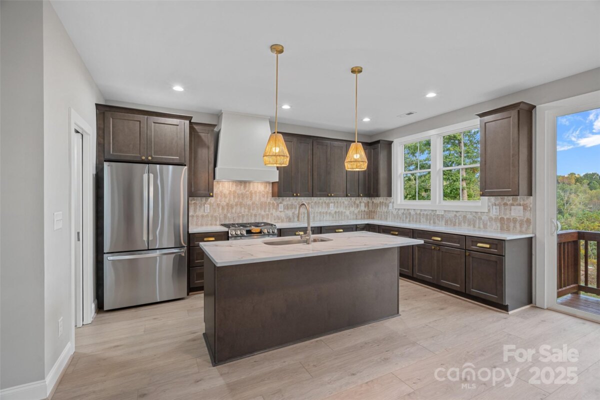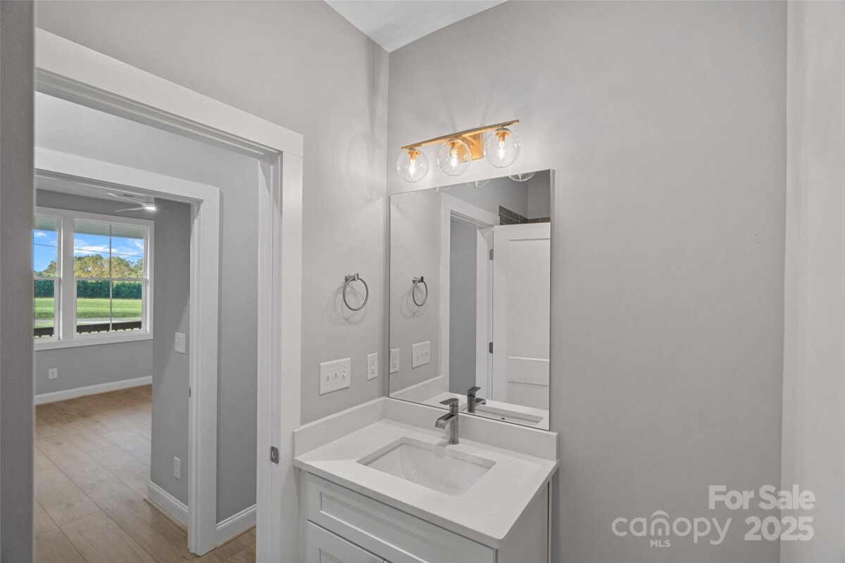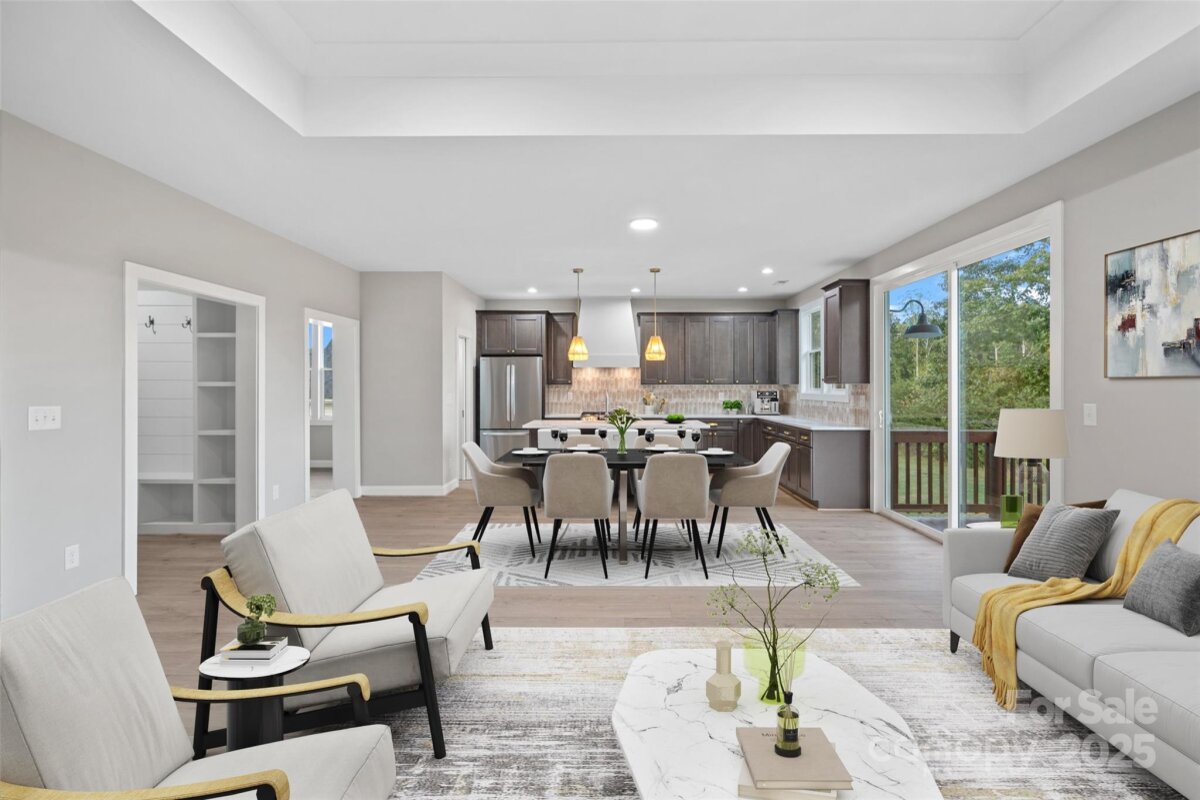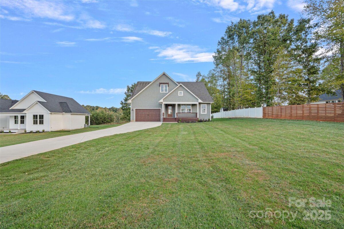 This gorgeous new construction ranch home offers a clean, functional layout with upgraded finishes and No HOA! The home features three bedrooms, two and a half bathrooms, an office, and an oversized entryway that gives the space a wide-open feel from the moment you walk in. The gourmet kitchen includes stainless steel appliances, a gas range with a custom vent hood, a walk-in pantry with a pocket door, and a large island with marble-style counters and brass hardware. An oversized sliding glass door in the sunlit dining area leads to a back patio, perfect for grilling or relaxing. The open living room features a tray ceiling and a gas fireplace with shiplap detail and a wood mantel. The primary suite also includes a tray ceiling, a large tiled shower, a dual vanity, and a spacious custom walk-in closet. Off the two-car garage, the mud and laundry room offer a smart transition space. There's also a large walk-in utility closet for extra storage. Throughout the home, you’ll find upgraded 9-inch LVP flooring and ceiling fans in every bedroom, the office, and the living room. Designed for both comfort and everyday practicality. Perfectly situated on over half an acre on a quiet street in Harmony, NC. Up to $15,000 in down payment assistance available for qualified buyers as well as closing cost incentives!!