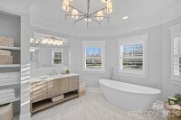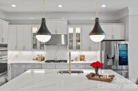 This masterfully reimagined home, situated within The Point, represents the pinnacle of lakeside luxury and modern sophistication. Every square inch of this residence has been meticulously curated through a top-to-bottom transformation, offering a "like-new" experience that is entirely move-in ready. Welcoming you home is a classic rocking chair brick front porch, perfect for enjoying the quiet elegance of the neighborhood. Upon entering, the interior reveals a seamless blend of comfort and style with a fresh designer palette applied to every wall. The wide Oak hardwood floors throughout the entire home have been beautifully refinished, providing a warm and consistent foundation for the home. Natural light pours through, controlled by new plantation shutters installed on the windows, offering a perfect balance of privacy and brightness. The main level is designed for both grand entertaining and intimate daily living. The formal dining room makes a sophisticated statement with custom wainscot panels, while a private office provides a quiet retreat for remote work. The heart of the home is the chef’s kitchen, which has undergone a comprehensive overhaul. This culinary space features professionally refreshed cabinetry with sleek new hardware and glass-front displays enhanced by new in-cabinet and under-cabinet lighting. Premium Quartz countertops provide a seamless transition as they wrap from the counters to also cover the backsplash. The centerpiece is a large, custom-built island topped with stylish quartz, featuring integrated storage and ample space for casual dining. The kitchen is equipped with a newer high-end appliance suite, including a French door refrigerator, dual oven and microwave combo, a high-performance range, and a stainless steel hood. This space opens directly to the expansive Great Room, anchored by a cozy gas fireplace and elegant built-in cabinetry. For effortless access between floors, a pneumatic elevator connects the main and second level. Throughout the home, all-new designer light fixtures ensure every room is illuminated with modern brilliance. The sizable primary suite serves as a private sanctuary, featuring refinished hardwood floors, a cooling ceiling fan, and expansive his-and-her walk-in custom closets. The ensuite bathroom has been completely remodeled to rival a five-star spa, showcasing a freestanding soaking tub and an expanded walk-in shower with dual shower heads and a stylish accented tile niche. The floor is laid with large-format tile, creating a sleek, expansive feel, while two new white oak vanities with modern lighting complete the luxury experience. This commitment to quality extends to all secondary bedrooms, which feature walk-in closets and access to bathrooms that have also been fully remodeled with updated surfaces and modern fixtures. On the third level, a versatile bonus room provides flexible space for a home gym, a second office, or a dedicated family media room. Outdoor living is a standout feature of this property. The rear of the home boasts a large covered deck, ideal for year-round lounging and dining, which leads to a dedicated fire pit area perfect for evening gatherings under the stars. The flat, private backyard is fully fenced and serves as a pristine blank canvas, perfectly leveled and ready for a custom POOL. Beyond the property lines, the lifestyle is unparalleled; the home includes a leased boat slip at the highly coveted Pier Z, providing immediate access to the deep waters of Lake Norman. Situated moments from the world-class amenities of Trump National Golf Club, this property is an invitation to experience the very best of Carolina lakefront living in a residence that has been flawlessly updated.
