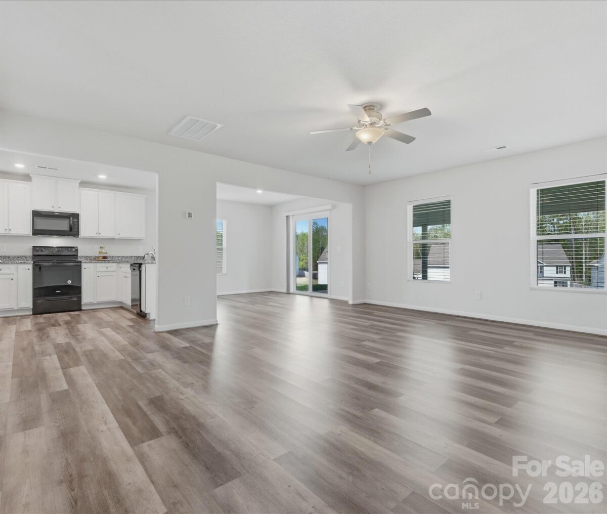 Wow—better than new! This beautifully maintained home is ideally located near shopping, dining, and everyday conveniences. Step inside to a stunning open-concept floor plan featuring upgraded luxury vinyl plank flooring throughout the main level. The chef’s kitchen is truly the heart of the home, complete with a huge breakfast bar, granite countertops, recessed lighting, two spacious pantry closets, and a generous dining area overlooking the backyard. The bright and airy living room is filled with natural light, creating a warm and inviting space for relaxing or entertaining. Upstairs, the spacious primary suite offers a vaulted ceiling, a large walk-in closet, and a private bathroom with an oversized shower. Three additional bedrooms and a full bathroom provide plenty of space for family, guests, or a home office. Additional highlights include a convenient main-level half bath and an attached two-car garage. Enjoy outdoor living in the backyard, featuring a large covered patio—perfect for entertaining or unwinding. The community also offers fantastic amenities, including a park, dog park, and scenic walking trails.