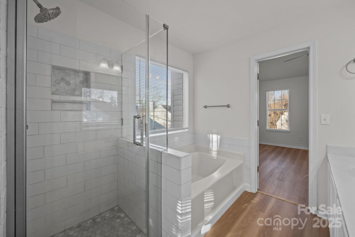 Beautifully renovated 3 bed/2.5 bath home featuring recent upgrades including fresh paint, new LVP flooring, smooth ceilings, updated light fixtures and more. The light-filled interior includes a spacious living room with a gas fireplace, while the refreshed kitchen showcases new cabinets, granite countertops, and a walk-in pantry, with all appliances conveying; it conveniently overlooks the fully fenced-in backyard. The primary bedroom, located upstairs, provides a luxurious retreat with a spacious en suite bath featuring a large soaking tub, separate shower, double vanity, and a generous walk-in closet. The other two bedrooms are also upstairs with custom shelving in the closets and a conveniently located upstairs laundry space. The fully fenced-in backyard includes a privacy fence and features a recently painted, covered deck with new railing, perfect for outdoor entertaining. Minutes from I-85, shopping, dining, and Irish Buffalo Creek Greenway.