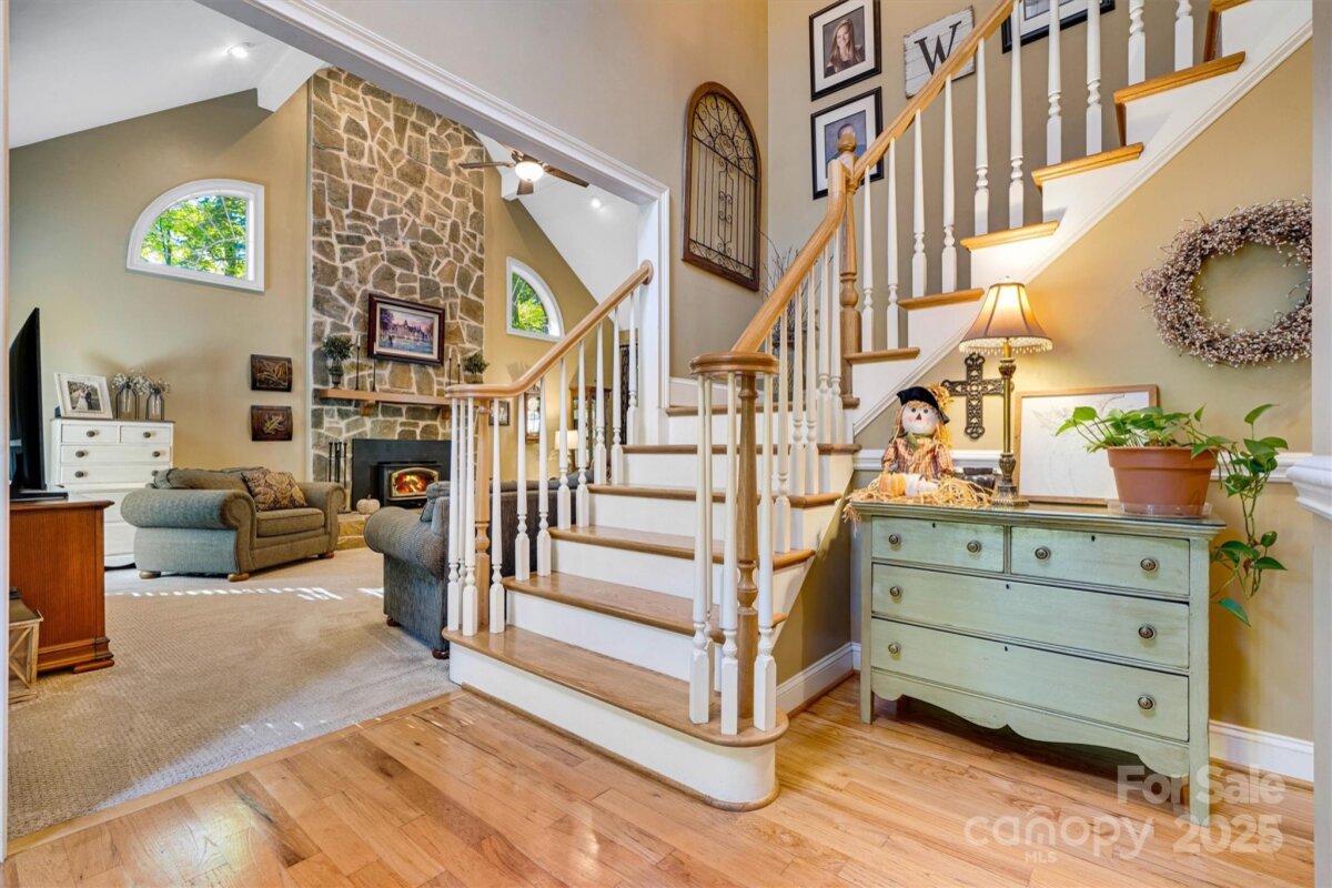 Beautiful, Private 4-Bedroom Home on Over an Acre in Mooresville Welcome to this stunning, one owner and well-cared-for home nestled on approximately 1.1 acres of peaceful privacy in Mooresville. Surrounded by mature trees and a fenced backyard, this property offers the perfect blend of charm, comfort, and functionality—without the restrictions of an HOA. A classic rocking chair front porch invites you in, setting the tone for the warmth that fills this beautiful home. Step through the two-story foyer accented by elegant oak stairs and hardwood floors that flow through the entry, dining room, and kitchen. The formal dining room is tastefully decorated and perfect for hosting family gatherings or dinner parties. The spacious eat-in kitchen is the heart of the home, featuring Corian countertops, a large island, electric cooktop, wall oven, and plenty of cabinet and counter space for meal prep and entertaining. Just off the kitchen, you’ll find a convenient laundry room with ample counter space for folding, a utility sink, and direct access to the attached two-car garage. Enjoy relaxing or entertaining in the two-story great room, highlighted by a spectacular stone fireplace with a wood stove insert capable of heating the home—perfect for cozy evenings in. A main-level bedroom offers great flexibility and can easily serve as an office, guest room, or private retreat. This room features two closets and is conveniently located near a full bath, making it ideal for guests or multi-generational living. Upstairs, the primary suite is a true retreat with a tray ceiling, large walk-in closet, and a luxurious ensuite bath featuring a jetted garden soaking tub, tiled shower, and dual sinks. Two additional bedrooms offer generous closet space and ceiling fans, while a full hall bath serves them comfortably. The large bonus room provides incredible flexibility—ideal as a media room, home office, playroom, or secondary living space. Outdoor living is just as inviting with multiple spaces to unwind and take in the peaceful surroundings. Step out from the kitchen to a deck perfect for grilling or morning coffee, or retreat to the screened-in porch that overlooks the private, wooded, and fenced backyard. A handy utility shed provides extra storage for lawn and garden equipment. Lovingly maintained by its original owner, this home radiates pride of ownership and timeless appeal. With its serene setting, thoughtful layout, and abundance of indoor and outdoor living space, this property offers the best of country living with close proximity to all that Mooresville has to offer as well as it's close proximity to charming Davidson. Don’t miss your chance to make this beautiful home your own—schedule your private showing today!