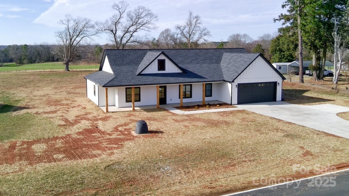 Experience modern farmhouse living at its finest in this newly built 3-bedroom, 2-bath home with a dedicated office, perfectly situated near peaceful farmland and less than 10 minutes from downtown Lincolnton, NC. Set on 0.88 acres, this property offers a spacious backyard with plenty of room to relax, entertain, or expand. Step inside to an inviting open-concept layout featuring a beautifully designed kitchen with a large island, hood vent, stylish backsplash, quartz countertops, and walk-in pantry—ideal for both everyday living and hosting. The adjoining living room showcases a soaring cathedral ceiling, adding an airy and impressive touch to the heart of the home, while the dedicated dining area provides the perfect spot for family meals or gatherings. The large primary suite is a true retreat, highlighted by a tray ceiling and a spa-inspired primary bath complete with two separate vanities, a deep soaker tub, and a stunning tiled shower. The additional bedrooms are spacious and share a well-appointed second bath featuring a double-sink vanity. With its thoughtful layout, modern finishes, and serene yet convenient location, this home offers the ideal blend of comfort, style, and country charm. Don’t miss the chance to make it yours!