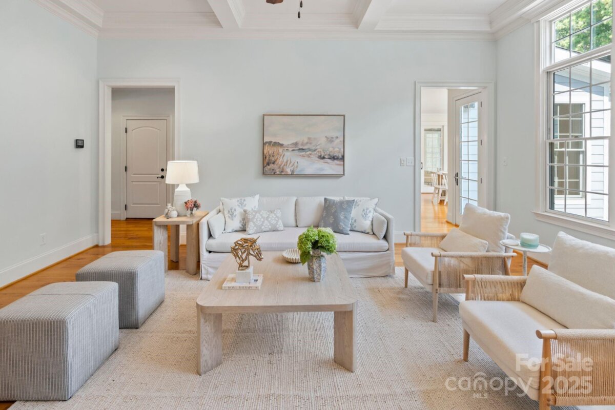 Discover a hidden gem in Mooresville’s quaint custom neighborhood of Bay Crossing! This impeccably maintained 4,145 sq ft home, lovingly cared for by the original owners, offers 4 bedrooms, 3 full baths, 2 half baths, with the primary suite and laundry on the main level. Step inside to the distressed pine wood floors throughout the main level, formal study with glass French doors, spacious dining room including a butler pantry as you enter the expansive kitchen which includes walk-in pantry, stainless steel appliances, nook area and vaulted keeping room warmed by gas log fireplace. The best part is a 2023 sunroom addition with a wood-burning fireplace with gas starter—perfect for year-round relaxation or entertaining. Upstairs, you’ll find 3 bedrooms, plus 2 spacious bonus rooms with attic storage. Enjoy an attached oversized 3-car attached garage, which is complemented by an expansive carriage house designed by Pippin Home Designs (2015). Ideal for boat or jet ski storage, woodworking, or a bonus garage, it also provides a second-level loft with abundant storage. This home is equipped with modern comforts including newer HVAC, hot water heater, a whole-house water filtration system, indoor/outdoor speakers, and an electric car charger. The flat, rectangular lot features a backyard with a cleared wooded area, outbuildings that match the house architecture, and plenty of space to enjoy outdoor living. A vapor barrier in the crawlspace adds peace of mind. Located near top-rated schools and just minutes from Stumpy Creek boat launch for easy Lake Norman access, this property offers a rare blend of convenience, character, and timeless design.