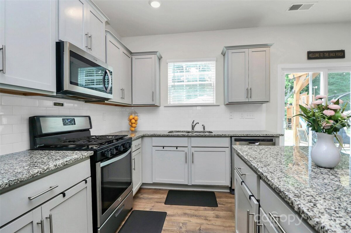 This stunning stone-accented two-story home features an open floor plan with 9-foot ceilings and stylish flooring throughout the main level. The gourmet kitchen offers a gas range, built-in microwave, granite countertops, and a spacious pantry, seamlessly flowing into the large family room with a cozy gas fireplace, perfect for both everyday living and entertaining. Step outside to enjoy a welcoming front porch, extended back patio, and a charming pergola, with the wooded backyard providing a peaceful sense of privacy. Upstairs, you’ll find three spacious secondary bedrooms and a full bath, along with a luxurious owner’s suite featuring a vaulted ceiling, spa-like bath, and an oversized walk-in closet. Located just a short stroll from the community’s amenities center—with a pool, clubhouse, and bocce ball court—this neighborhood also features a private launch for paddle boards and kayaks on Lake Norman, offering the ideal combination of comfort, style, and recreation.