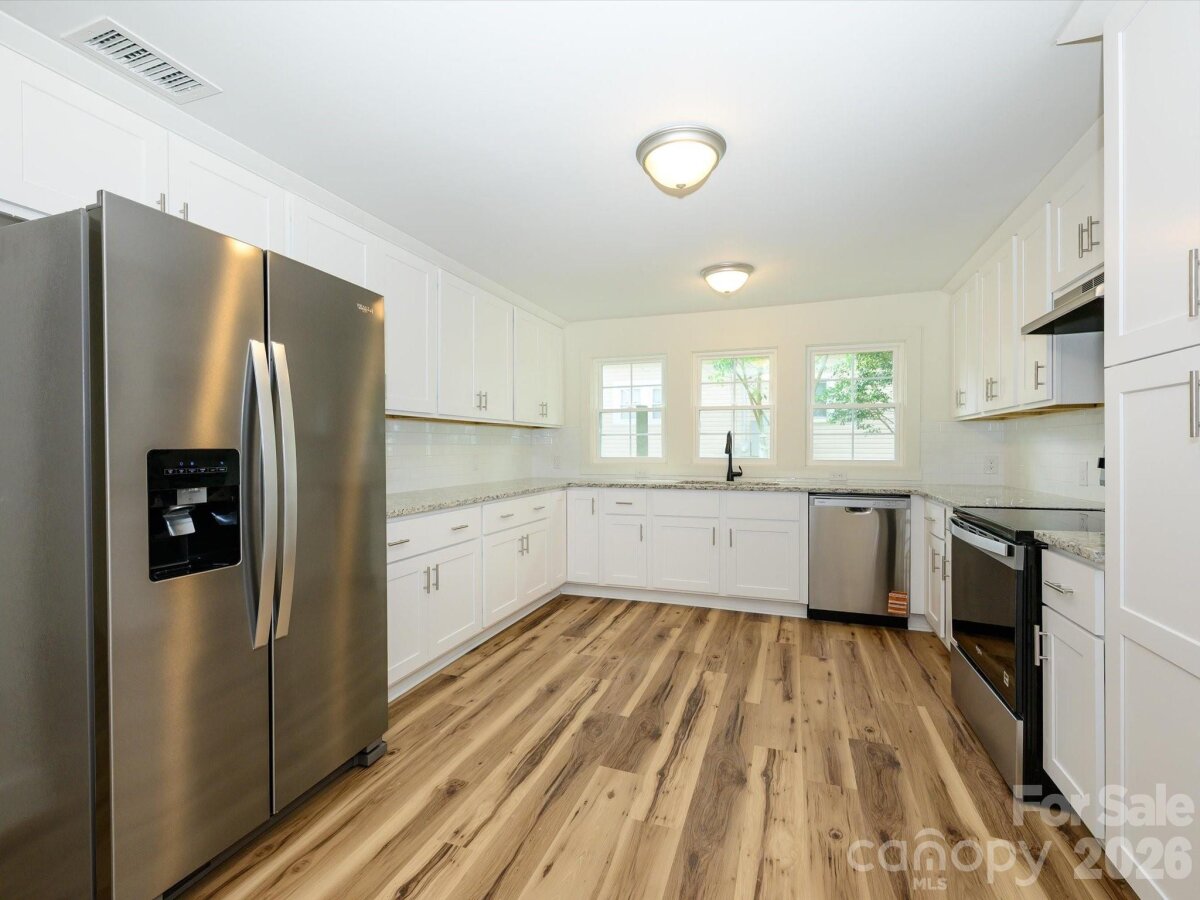 Totally renovated 1900 bungalow blending original charm with today’s modern finishes. This home features spacious rooms throughout, including a large living room, dining room, three bedrooms, and two full baths. The kitchen is packed with upgrades, including new white cabinetry, granite countertops, a classic subway tile backsplash, and stainless-steel appliances. Both full bathrooms have been beautifully renovated with new vanities, updated lighting and plumbing fixtures, and stylish subway tiled showers. Enjoy new LVP flooring throughout—no carpet! Major improvements include a new roof, water heater, windows, siding, driveway, front and back decks, giving you peace of mind for years to come. Great location, just a short drive to Downtown Concord restaurants and shopping as well as the Gibson Mill Antique Mall. Easy access to I-85, Hwy 601 and Hwy 29. Move-in ready and waiting for you to call it home!
