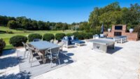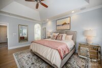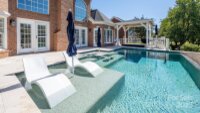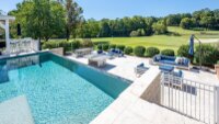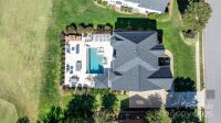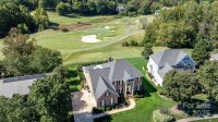 Stunning full-brick home on the 9th hole and overlooking the 18th of the P.B. Dye Signature Golf Course, offering resort-style outdoor living with premium updates throughout. The backyard oasis features a travertine vanishing-edge infinity pool with custom lighting, outdoor fireplace, and two mounted TVs under a pergola and gazebo equipped with fans and a mister system. The remote-controlled fountain and landscape lighting enhance the ambiance, while AstroTurf in the side yard and an invisible dog fence provide low-maintenance convenience. Irrigation system includes an added water line to auto-fill the pool (no sewer tax on water used). Inside, no detail was spared. All-newly updated flooring and staining of hardwood floors, custom cabinetry in the family room, study, kitchen, primary closet, and garage, and Italian marble tile showcase craftsmanship and elegance. The gourmet kitchen includes a Wolf dual-fuel range, Sub-Zero built-in refrigerator, Sharp microwave drawer, and granite and quartz countertops. The primary suite offers luxury and comfort with an oversized frameless glass shower featuring dual shower heads, Italian marble tile, a free-standing tub, new plumbing fixtures, and a Toto bidet system. Additional highlights include: Hand-painted French-style wallpaper in the dining room, New chandeliers and light fixtures throughout (entry hall, dining, study, kitchen, and stairway), Updated flooring and staining, Custom carpet stair runner, New double front doors with privacy film, Ring doorbell and two Ring floodlight cameras, Built-in speaker system across dining, study, primary bed and bath, outdoor area, and four upstairs bedrooms, New roof and leaf-guard gutters (2023), Wrapped crawl space (2023), Chimney topper, Clean termite inspection (Sept 2025) and a new Millennium Pest Control barrier system. Garage features custom cabinetry. Outdoor living includes travertine tile surfaces, and the ping-pong table may convey upon request. These are just highlights, too many features and additions to list!
