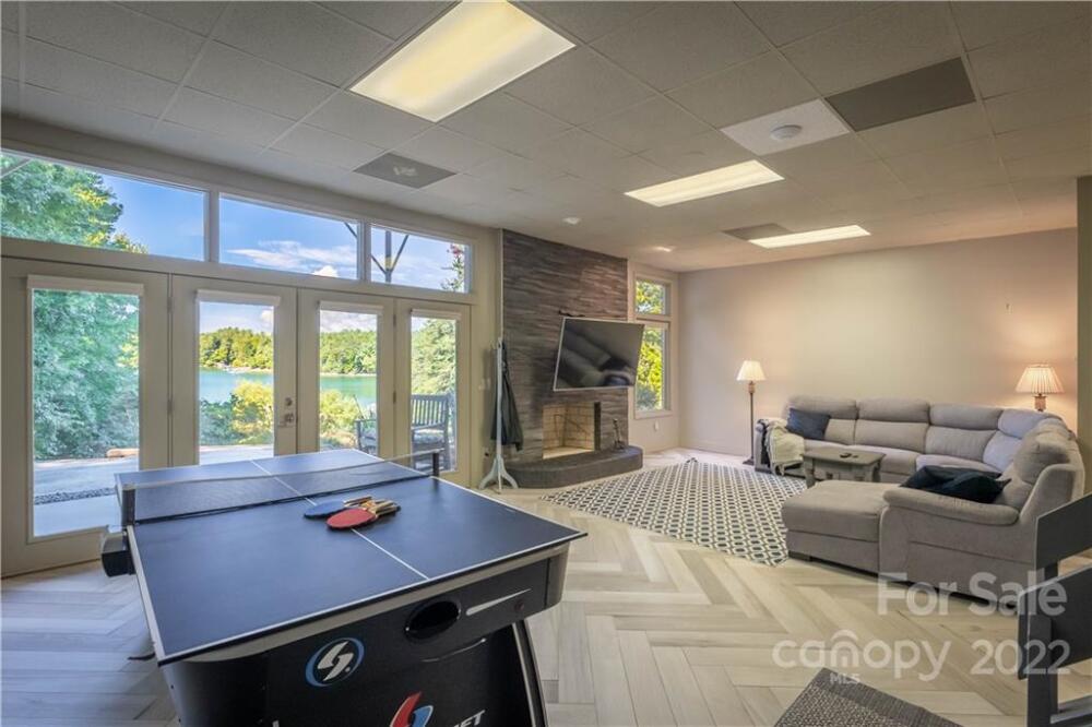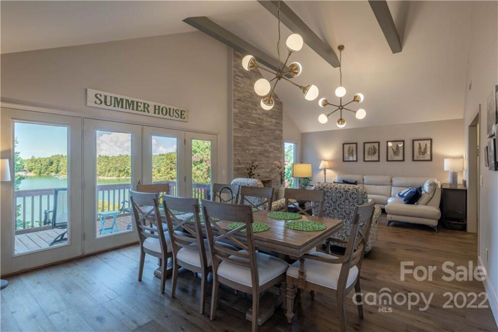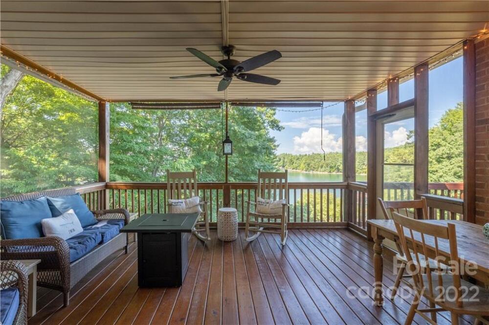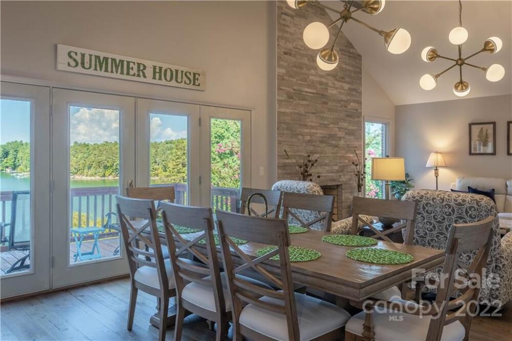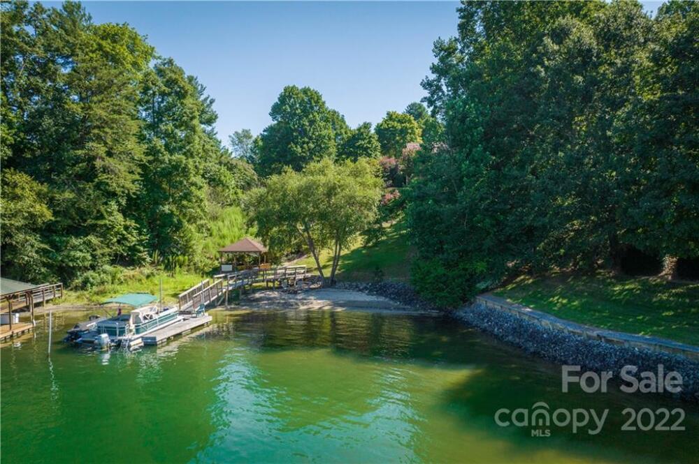This LAKEFRONT home on Lake James has it all! It has beautiful year-round unobstructed lake and mountain views including Table Rock. The home features 4 bedrooms, and 2.5 baths, across two levels in East Shores. The house was renovated in 2018 with high-end kitchen aid appliances, granite counters, a pantry, flooring, fixtures, an ensuite bath with a walk-in shower, a soaking tub, and a walk-in closet. Enjoy your lake time on the screened-in covered porch, decks, lakefront beach, fire pit, and single slip dock with jet ski port: two gas fireplaces, large living spaces on main and basement levels, and, two kitchens. Parking is available for the main level and basement level behind the home. Community pool and tennis courts. No STR. Broker/owner