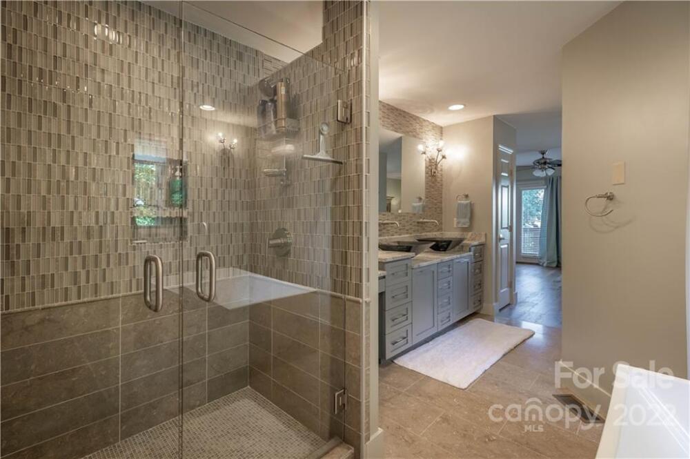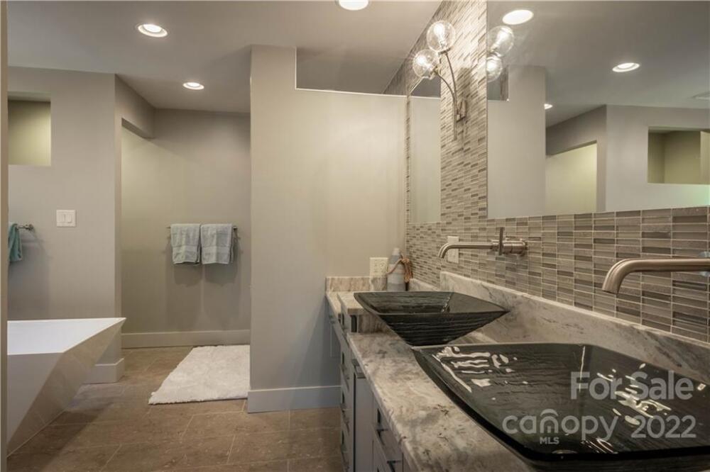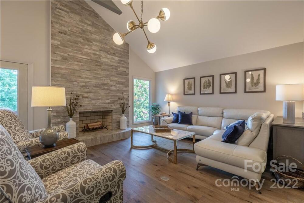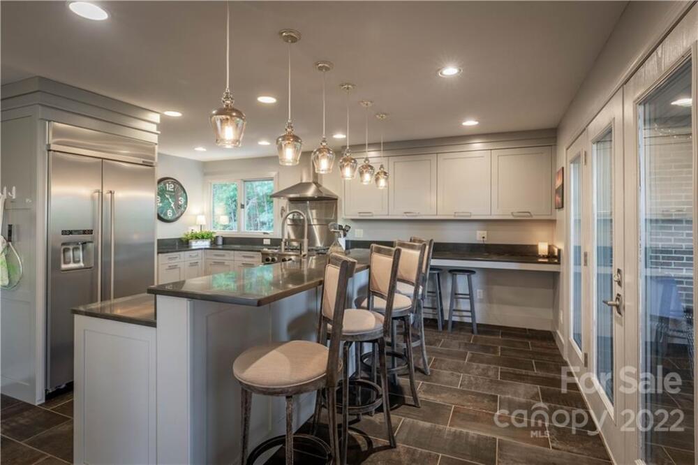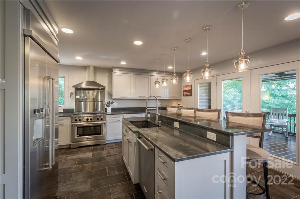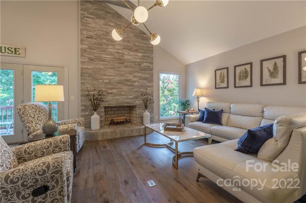 This LAKEFRONT home on Lake James has it all! It has beautiful year-round unobstructed lake and mountain views including Table Rock. The home features 4 bedrooms, and 2.5 baths, across two levels in East Shores. The house was renovated in 2018 with high-end kitchen aid appliances, granite counters, a pantry, flooring, fixtures, an ensuite bath with a walk-in shower, a soaking tub, and a walk-in closet. Enjoy your lake time on the screened-in covered porch, decks, lakefront beach, fire pit, and single slip dock with jet ski port: two gas fireplaces, large living spaces on main and basement levels, and, two kitchens. Parking is available for the main level and basement level behind the home. Community pool and tennis courts. No STR. Broker/owner