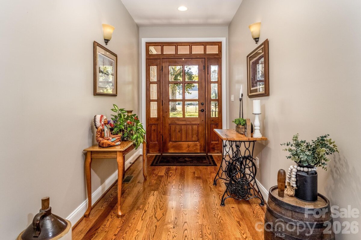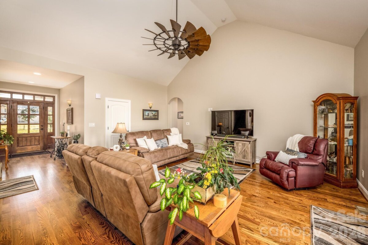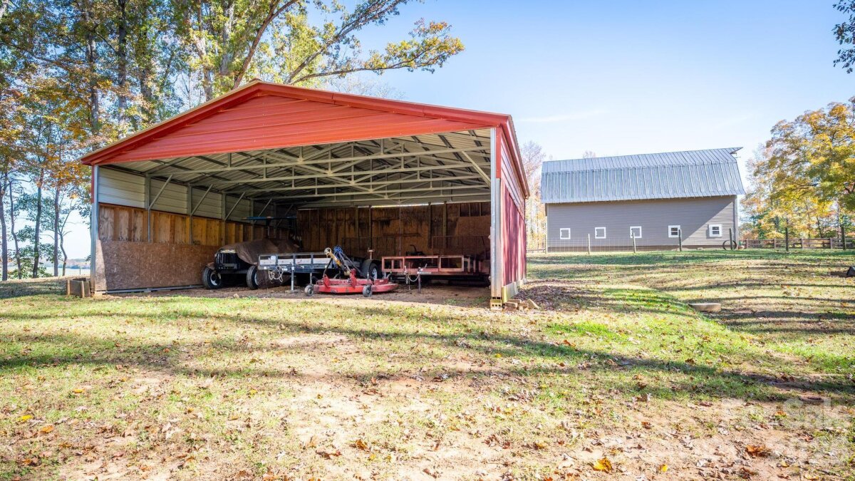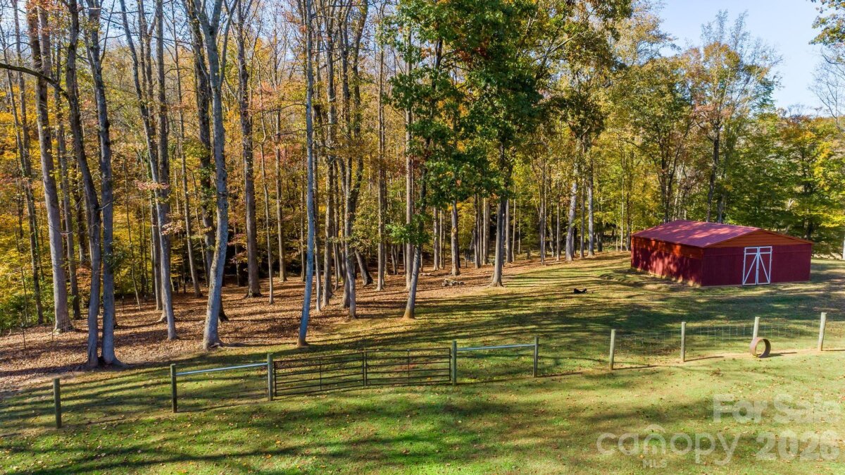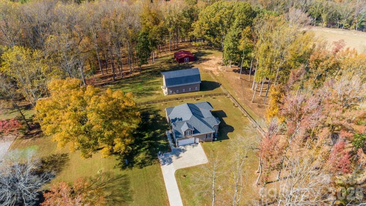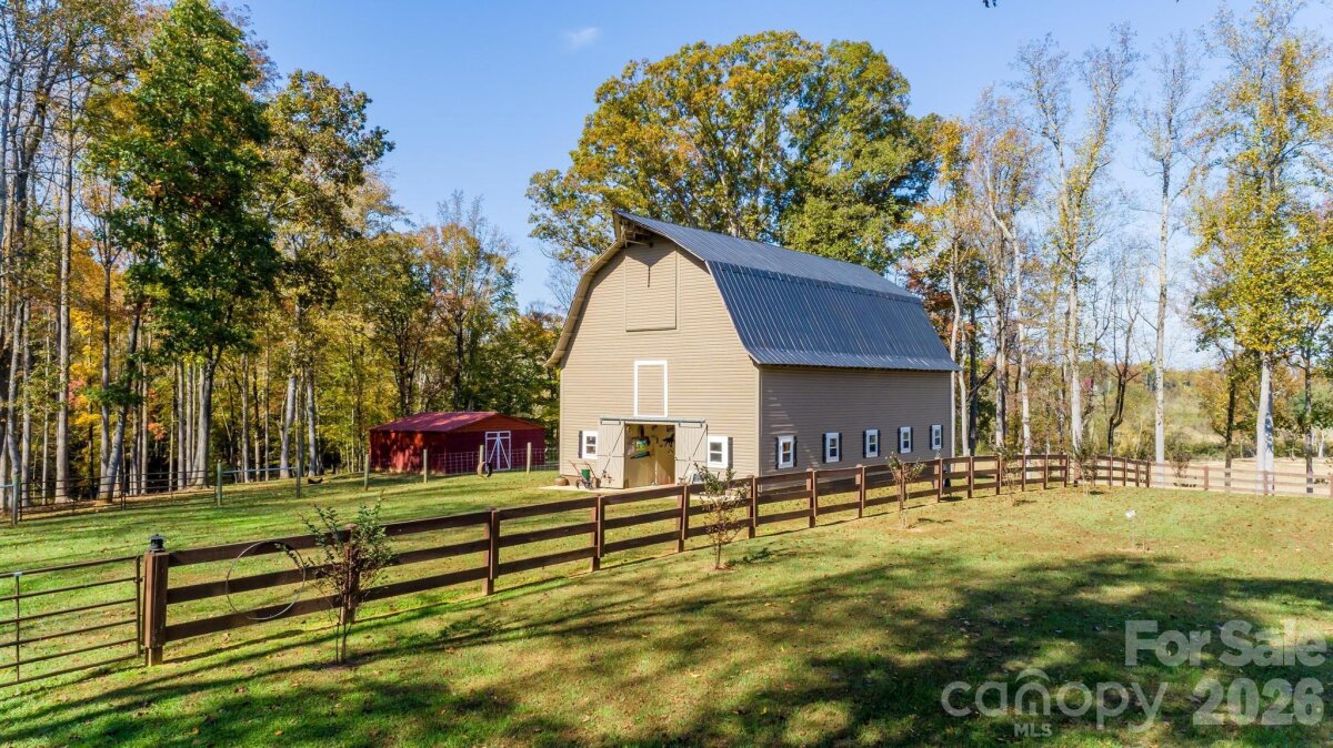 Gorgeous and immaculately maintained custom ranch with bonus room on 26+ acres in N. Iredell. Stunning setting for your own private estate with some open and some wooded areas, an old (but well maintained) 2-story barn with massive loft area, 3 stalls, a workshop space, plus a large equipment shed for your tractor and implements. Quality built home has covered porches front and back, hardwood floors on most of the main level, luxurious primary suite with double tray ceiling and his-and-hers closets, primary bath with soaking tub and separate custom tiled shower, dual vanities. Greatroom has soaring vaulted ceiling and is open to the kitchen with its custom cherry cabinetry, granite countertops, stainless appliances, breakfast bar and dining area. Large laundry room just off the kitchen area. Seller has improved the barn with vinyl siding for lower maintenance and upgraded the tack room (currently just used for storage) as well as adding lots of ornamental trees in the yard. Must see!