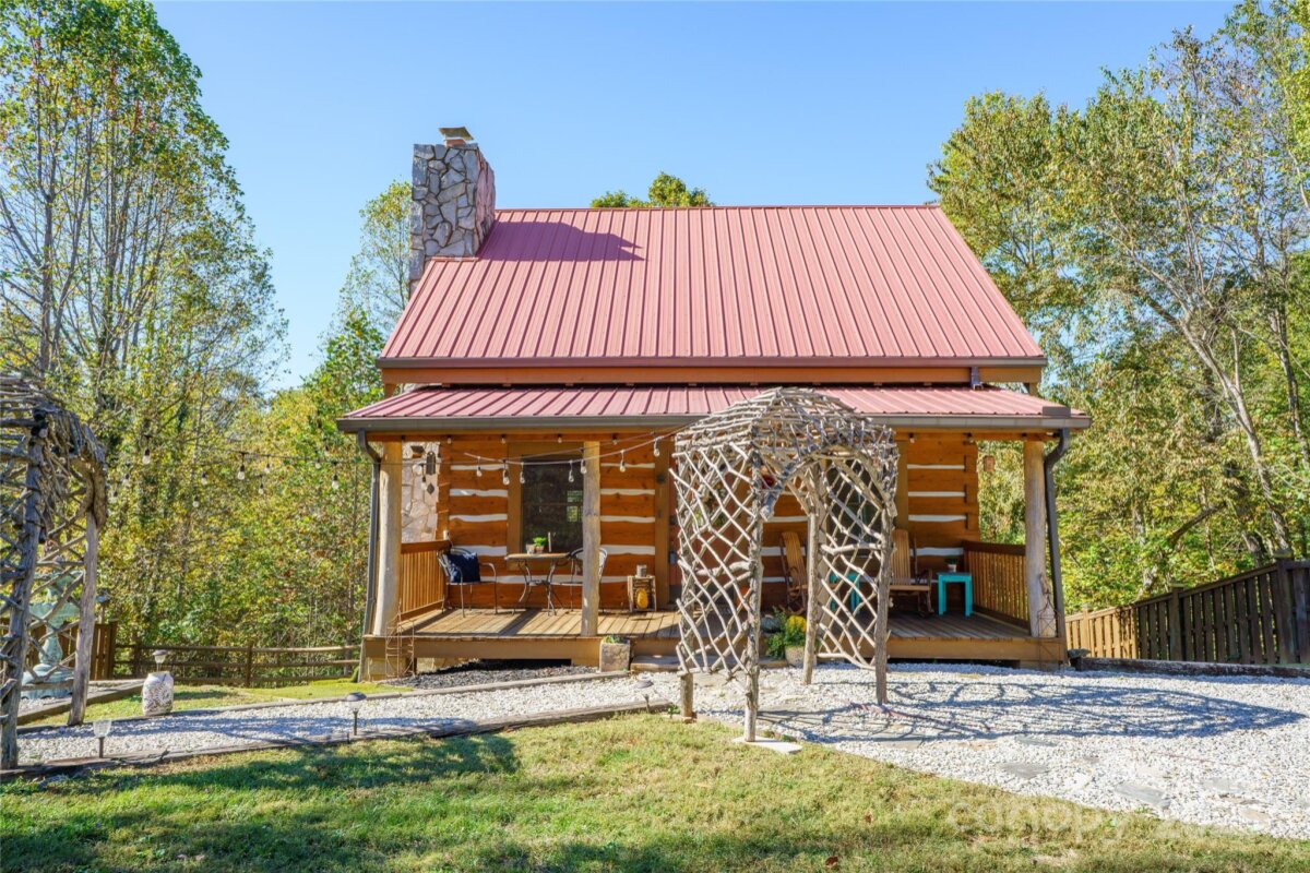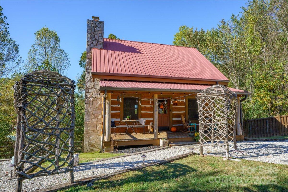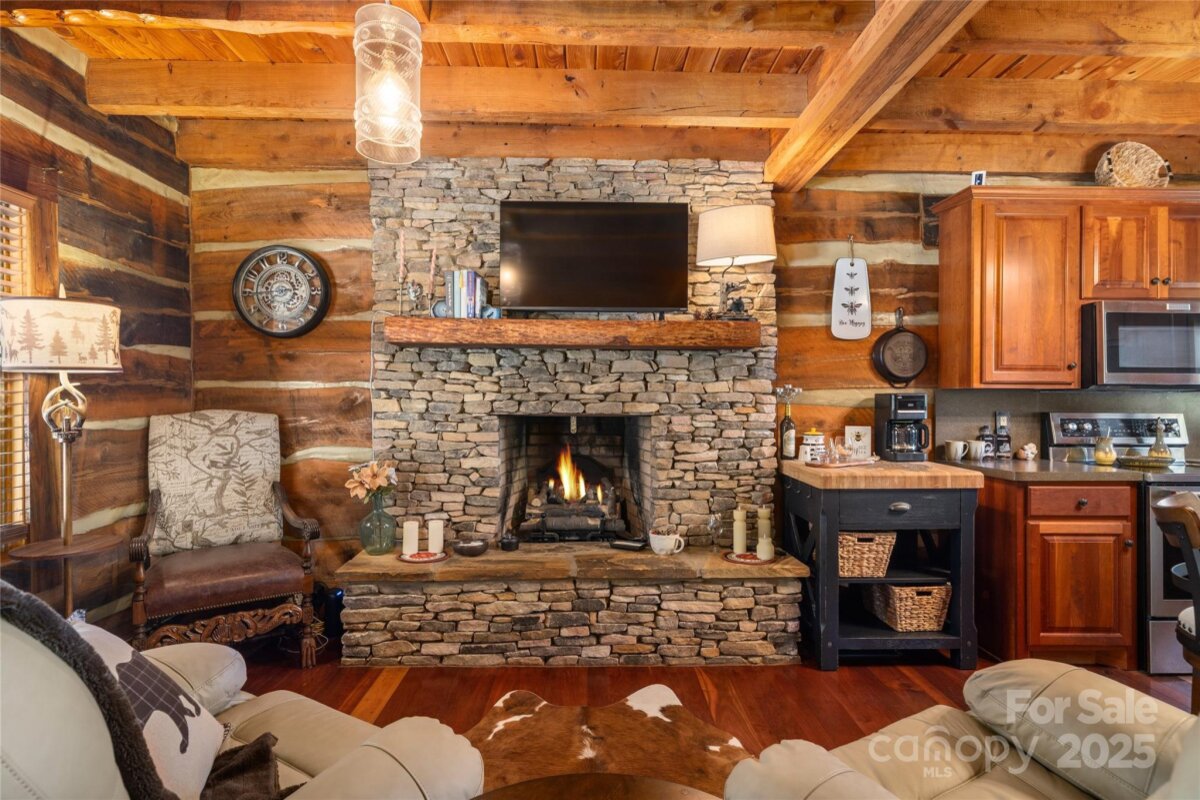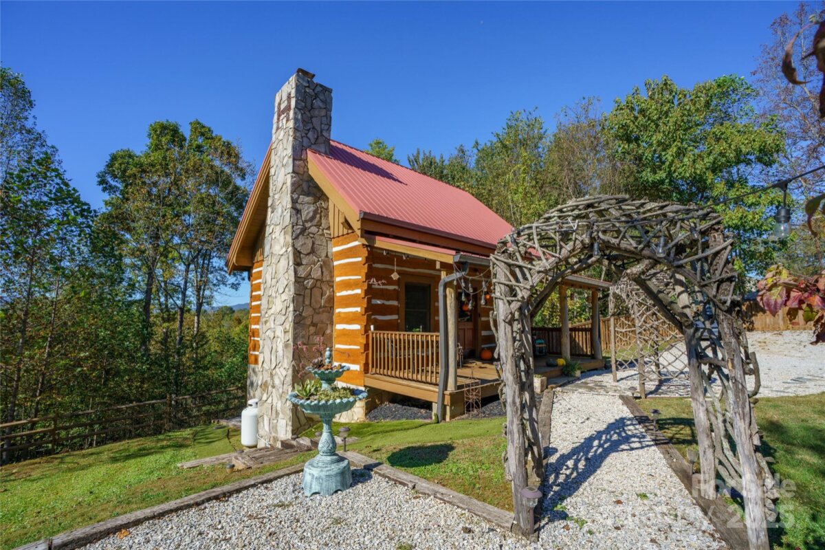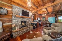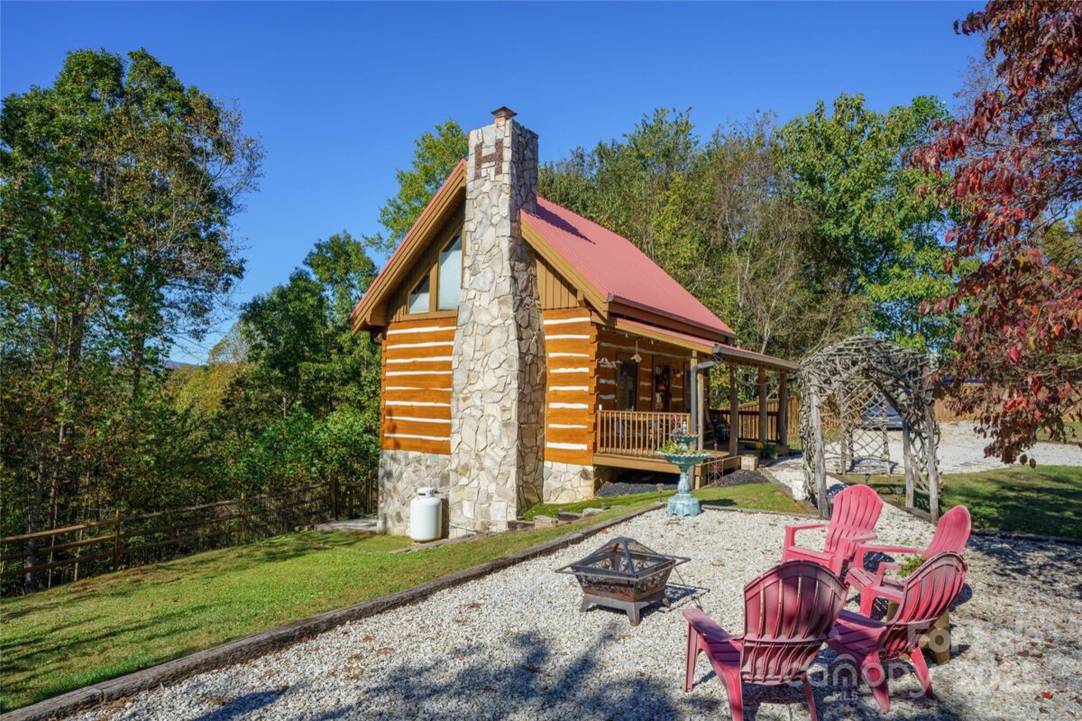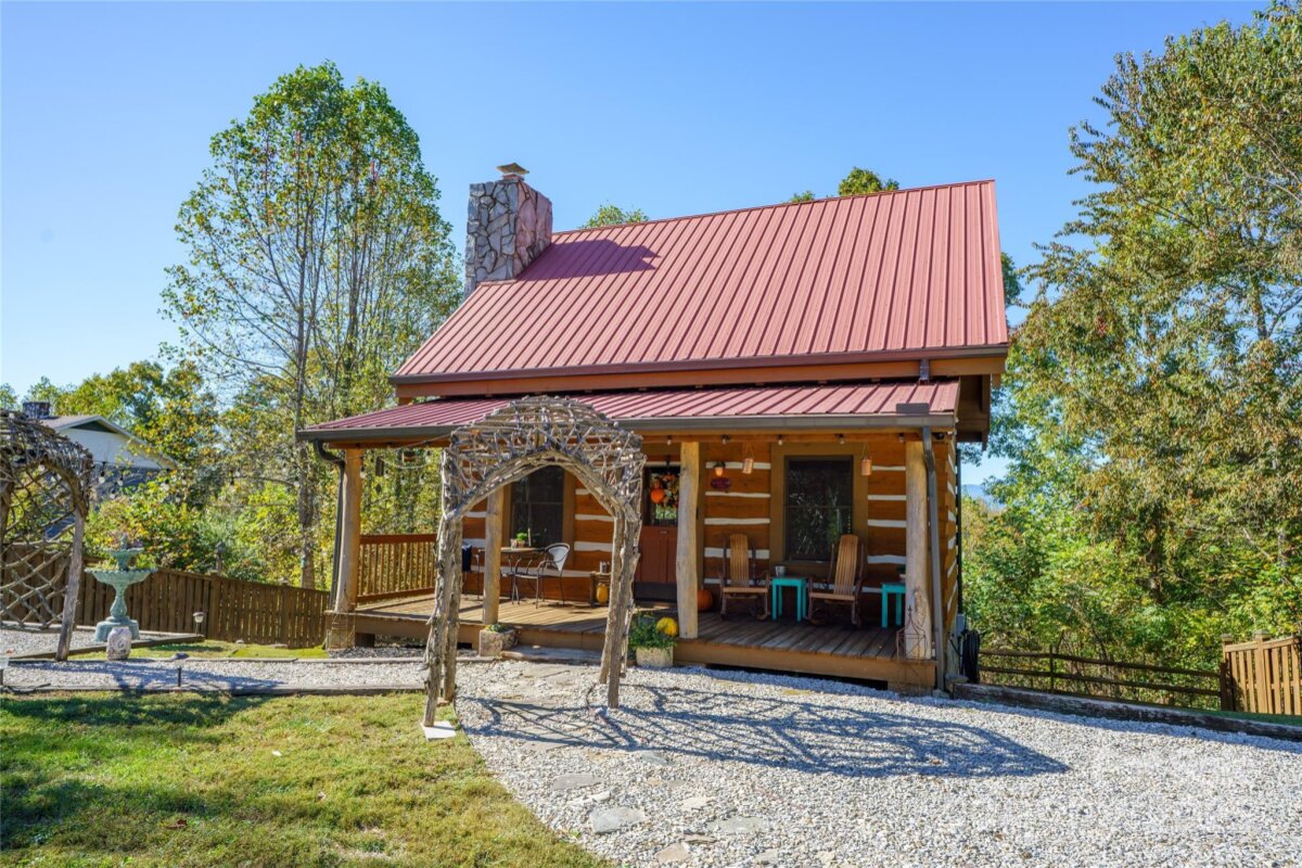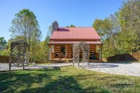 This well-cared-for log cabin offers mountain views along with easy access to nearby amenities. Built with attention to detail and quality materials, the home has been consistently maintained over time. A recent professional home inspection has been completed and reflects the property's excellent condition. The main level features an open living area with hardwood floors, a floor-to-ceiling stacked stone fireplace with Buck Stove gas logs, and a well-appointed kitchen with high-end appliances. A bedroom and full bath are also located on the main floor, providing convenient single-level living. Upstairs, the primary suite spans the entire second floor and includes beamed ceilings, two sitting areas, and a half bath. A separate exterior entrance leads to a walkout basement offering 537 square feet of unfinished, climate-controlled space—ideal for a gym, workshop, or storage. Outdoor features include a fenced yard with a fire pit and grilling area, as well as a balcony off the kitchen that offers views of the mountains and surrounding landscape. The home is on a private well and septic system and is being sold fully furnished, with a few personal exclusions. For more information or to request the inspection report, don't hesitate to get in touch with the listing agent.