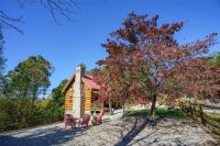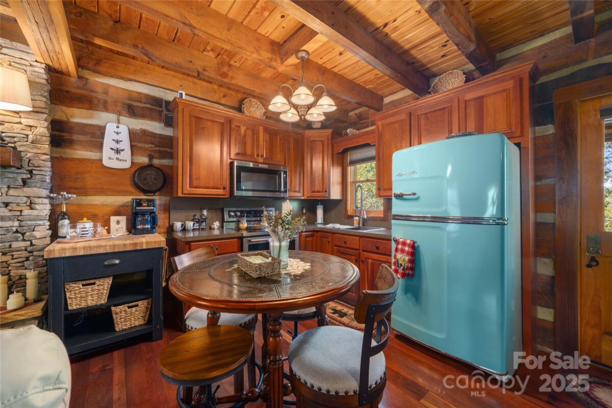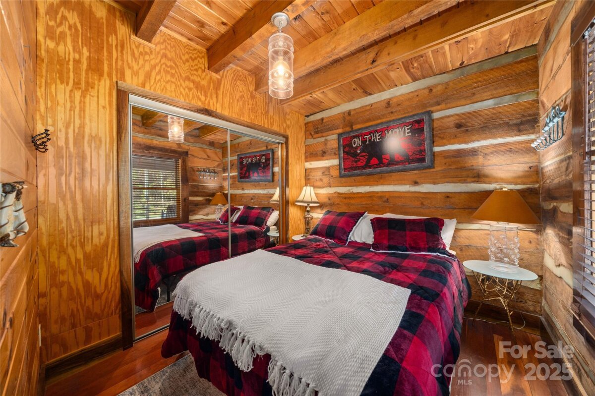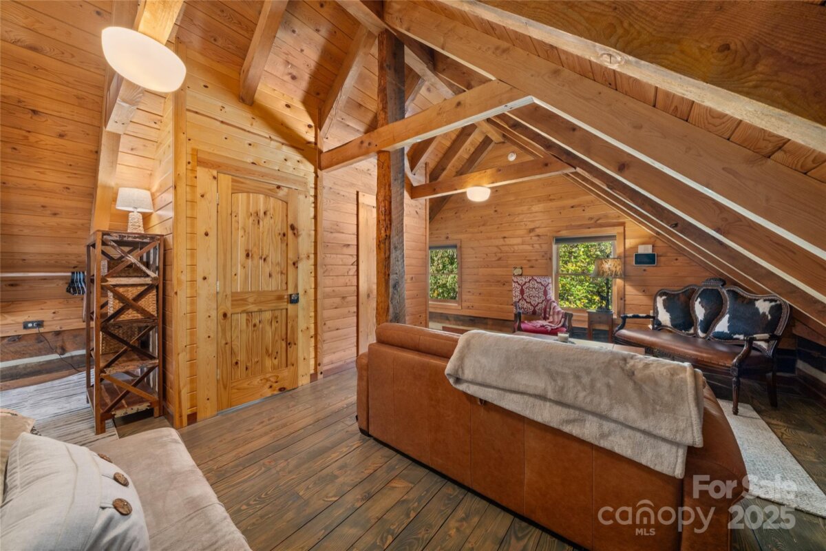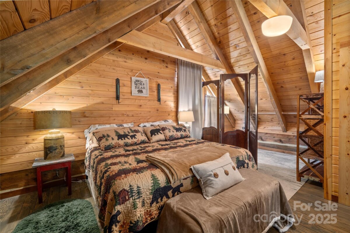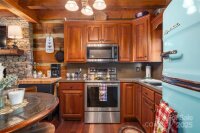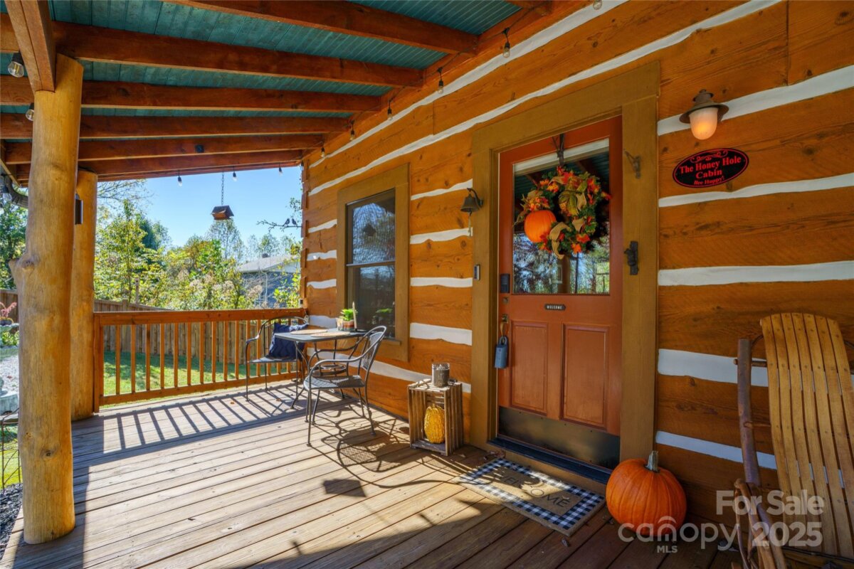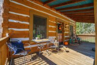 This well-cared-for log cabin offers mountain views along with easy access to nearby amenities. Built with attention to detail and quality materials, the home has been consistently maintained over time. A recent professional home inspection has been completed and reflects the property's excellent condition. The main level features an open living area with hardwood floors, a floor-to-ceiling stacked stone fireplace with Buck Stove gas logs, and a well-appointed kitchen with high-end appliances. A bedroom and full bath are also located on the main floor, providing convenient single-level living. Upstairs, the primary suite spans the entire second floor and includes beamed ceilings, two sitting areas, and a half bath. A separate exterior entrance leads to a walkout basement offering 537 square feet of unfinished, climate-controlled space—ideal for a gym, workshop, or storage. Outdoor features include a fenced yard with a fire pit and grilling area, as well as a balcony off the kitchen that offers views of the mountains and surrounding landscape. The home is on a private well and septic system and is being sold fully furnished, with a few personal exclusions. For more information or to request the inspection report, don't hesitate to get in touch with the listing agent.