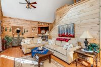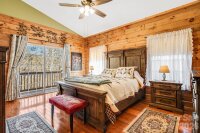 Come home to Riverbend, one of Lake Lure's most desirable communities! Walk miles of nature trails with waterfalls and views or relax on the private lake's beach with covered picnic area. The community has two separate private lakes and river access for your enjoyment. Beautiful log home is set up for multi-generational living with two separate living spaces. Upstairs, you'll find the spacious primary bedroom and guest bedroom. The loft would make a great additional sleeping space, or use as an office or playroom. The eat-in kitchen is a chef's delight and wonderful for entertaining numerous guests in the adjacent covered and screened-in porch just outside. Downstairs, you'll find an additional sleeping/living area with its own entrance from the garage or exterior. Kitchenette includes microwave and refrigerator. Full bathroom with shower makes it easy to rent out short or long term. Short-term rentals are permitted inside this gated community. Brand new flooring and roof/gutters in 2025; HVAC 2021. Pre-inspection report available to give you peace of mind. Schedule your showing today for 158 Raven Blvd and embrace lake life living in the mountains.