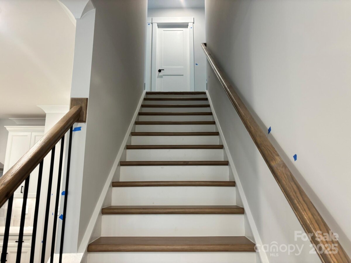 Discover the ease of low-maintenance living in this beautifully designed ranch-style home, featuring an additional half story upstairs complete with a bedroom, full bathroom and a loft. The Mayfair plan features an open kitchen with breakfast area that leads into the family room. The designer kitchen includes white cabinets with matte black hardware, quartz countertops and stainless appliances, including a gas cooktop, designer range hood and wall oven. The primary bedroom has a tray ceiling as well as a luxury shower in the primary bath. One additional bedroom and an office are also featured on the main floor. This home combines the luxury of brand-new construction with thoughtful amenities including lawn care and conveniently located walking trails. Enjoy modern living in a peaceful, well-maintained neighborhood designed for comfort and convenience.