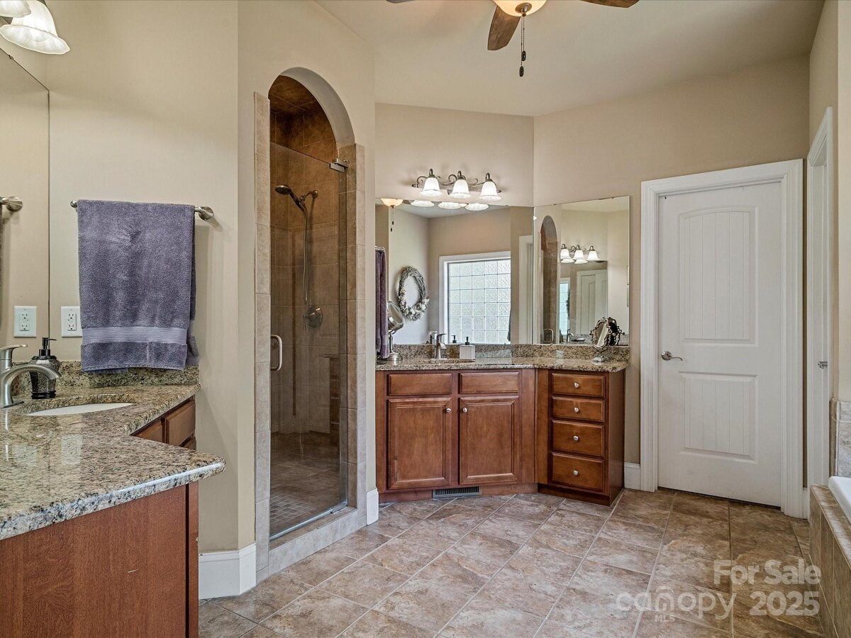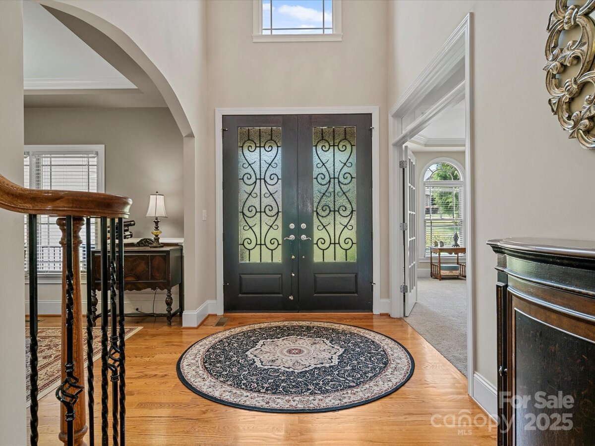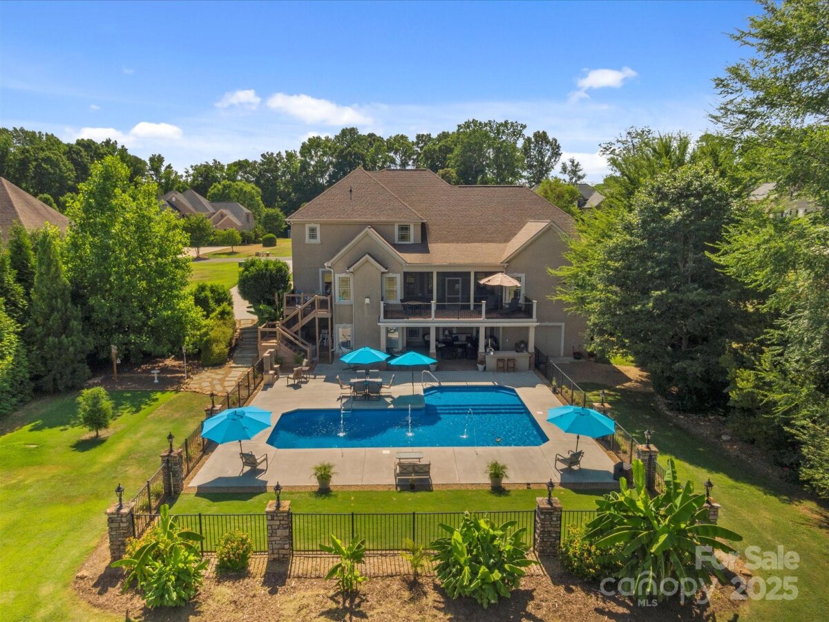 Stunning custom executive home with a pool in the desirable Walden Ridge neighborhood. Features a grand foyer, an office with bay window and French doors, a formal dining room, and a spacious family room with a stone fireplace centerpiece. The kitchen, with coffered ceilings, includes two islands, ample cabinet and prep space, and a large pantry. Main level also offers a keeping room, laundry room, breakfast nook, and access to a screened porch and back deck leading to the pool. The primary suite on the main floor boasts French doors to the porch, a double vanity, whirlpool tub, dual-head shower, walk-in closet, and linen closet. Upstairs are three large bedrooms with walk-in closets, a Jack-and-Jill bathroom, linen closets, and a bonus room with a bar, sink, mini fridge, and custom surround sound system. The finished basement mirrors the main floor, including a great room, breakfast area, keeping room, kitchen, large pantry, second laundry room, full bath, additional rooms, and storage. The backyard is an entertainer's dream with a covered patio, fireplace, custom grill island, and a massive pool for everyone to enjoy. RV electric hook up ready for your guests.