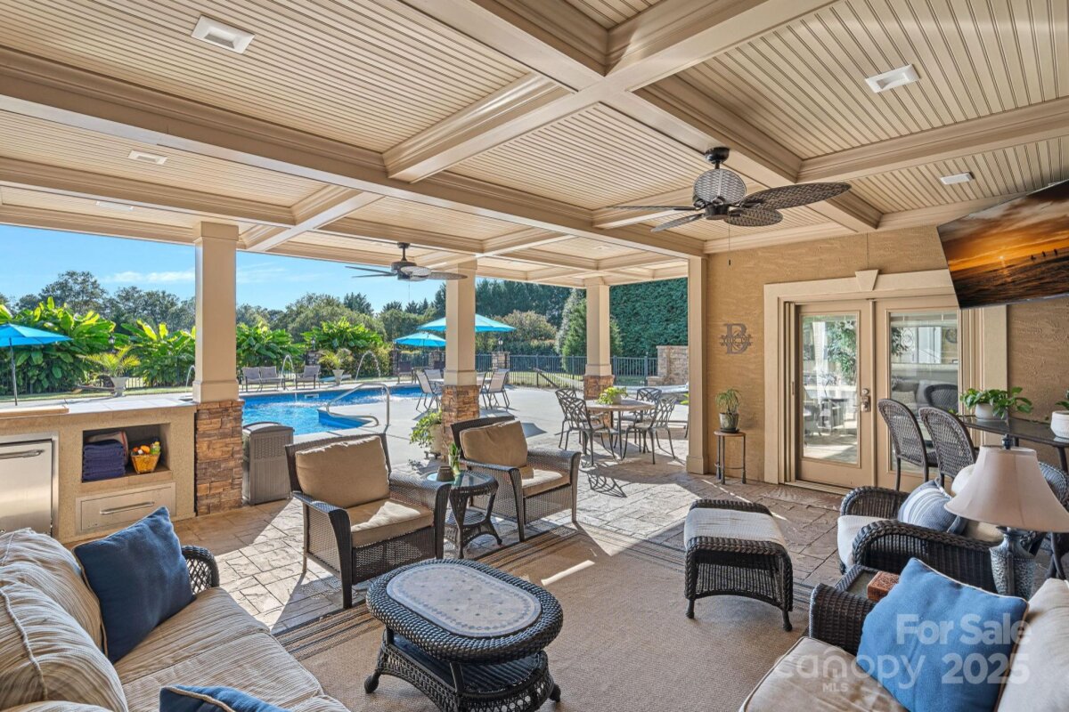 Stunning custom executive home with a pool in the desirable Walden Ridge neighborhood priced below recent appraisal. Features a grand foyer, an office with bay window and French doors, a formal dining room, and a spacious family room with a stone fireplace centerpiece. The kitchen, with coffered ceilings, includes two islands, ample cabinet and prep space, and a large pantry. Main level also offers a keeping room, laundry room, breakfast nook, and access to a screened porch and back deck leading to the pool. The primary suite on the main floor boasts French doors to the porch, a double vanity, whirlpool tub, dual-head shower, walk-in closet, and linen closet. Upstairs are three large bedrooms with walk-in closets, a Jack-and-Jill bathroom, linen closets, and a bonus room with a bar, sink, mini fridge, and custom surround sound system. The finished basement mirrors the main floor, including a great room, breakfast area, keeping room, kitchen, large pantry, second laundry room, full bath, additional rooms, and storage. The backyard is an entertainer's dream with a covered patio, fireplace, custom grill island, and a massive pool for everyone to enjoy. RV electric hook up ready for your guests. Four miles from downtown Mooresville. Priced below current appraisal! 11 minutes from downtown Mooresville, 17 minutes from Davidson, 20 minutes from Lowes Corporate, 19 minutes from Lake Norman Hospital, 3 minutes from new Publix
