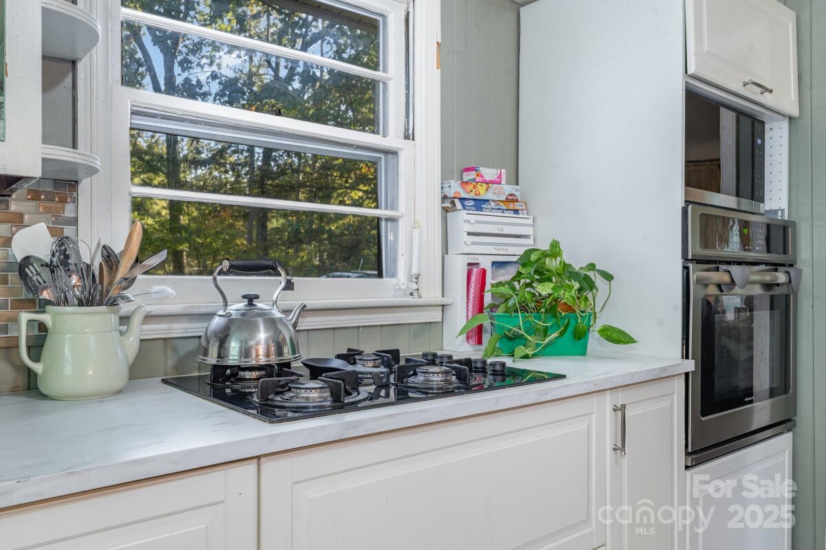 Welcome home to cozy one story living! Just a short distance from downtown Gastonia, this home is perfect for the modest lifestyle. The home features great curb appeal with flower beds, mature shade trees, a detached deck, a detached one car garage with wood burning fireplace and metal roof, a fenced in back yard, and an asphalt driveway. Outside also includes a 2025 year metal roof, painted shutters, a back porch for peaceful sitting. Inside you will find two spacious bedrooms, a bathroom that includes the washer and dryer, hardwood floors, renovated kitchen with stainless steel appliances, a dining area featuring lots of highly desirable natural light along with a wood burning fireplace. Spend your evenings relaxing in the living room around the gas log fireplace. This home has everything that should make you want to take a tour!