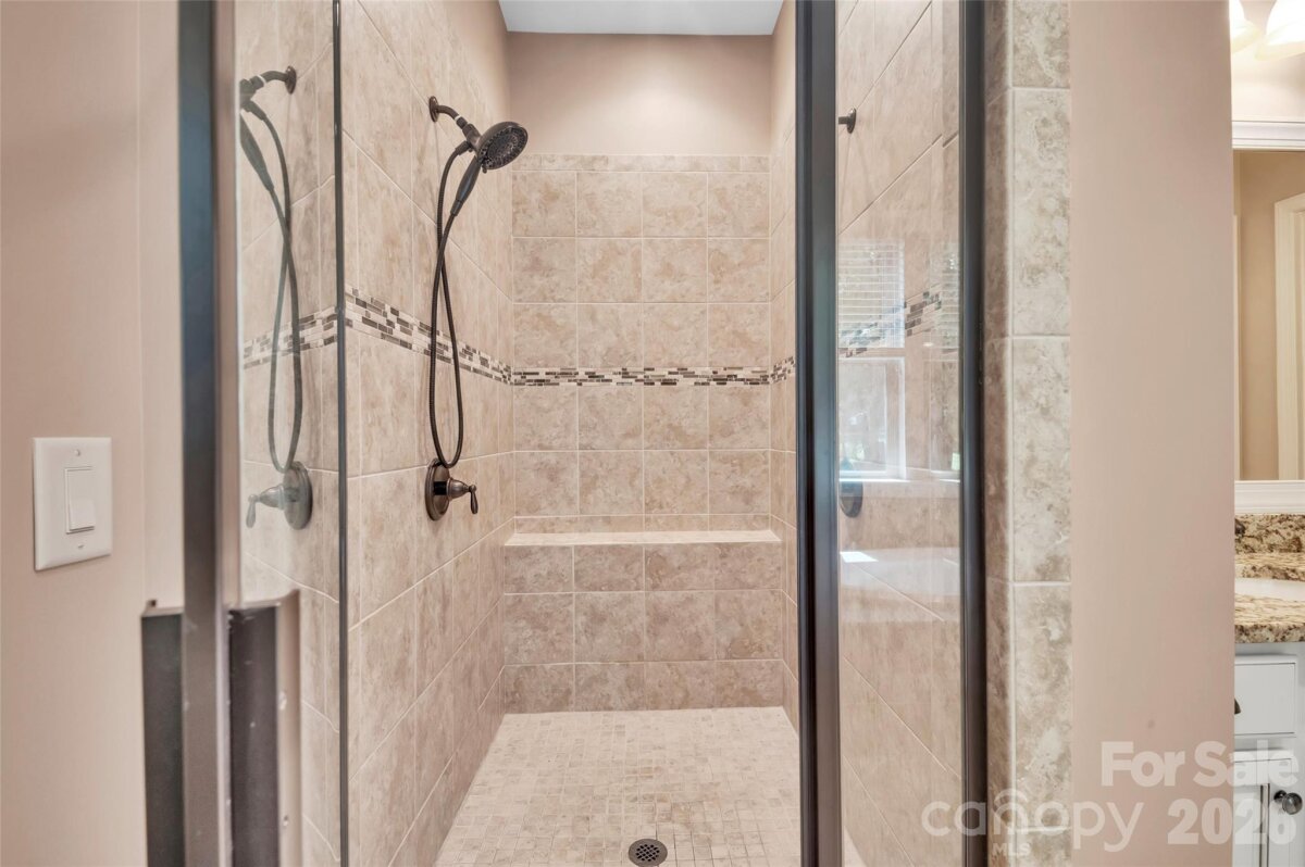 Welcome to the exclusive, private gated community of Farrington. This luxury home is well maintained and perfectly situated near Ballantyne, Pineville, and Fort Mill. Set on a corner lot, the mature wooded landscaping offers complete privacy. The open-concept design effortlessly blends the living room and kitchen, creating an ideal space for entertaining. The expansive kitchen features a central island, custom cabinetry, a gas cooktop, walk-in pantry, SS appliances, and a charming butler's pantry. The primary BR on the main level is a true retreat, boasting a luxurious en-suite bathroom, a spacious walk-in closet, and direct access to the large screened-in porch. Upstairs, you'll find three additional BR, two having en-suites, along with a full hall BA. The large bonus room, complete with a gas FP, offers endless possibilities, while an extra versatile room at the end of the hall is ideal for a bedroom or more. Brand new paver patio, back yard landscaping and stone pathway to a fire pit. Schedule your viewing today and begin envisioning your dream home!