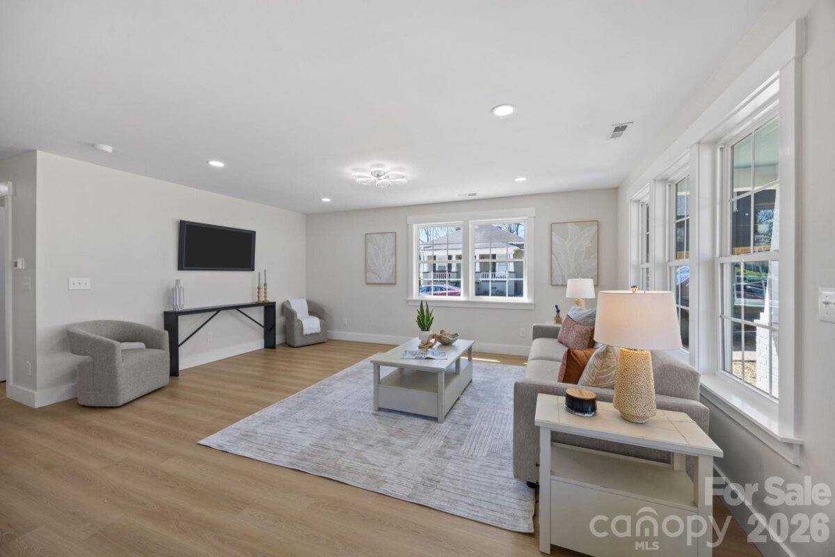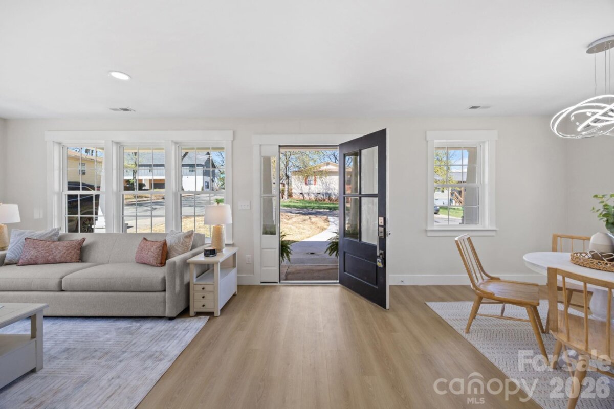 Fully remodeled and move-in ready, this charming bungalow—situated on a desirable corner lot—offers the perfect blend of style, functionality, and location. Featuring 3 bedrooms and 3 full baths, the thoughtfully updated interior includes a beautifully designed kitchen with a gas cooktop and built-in beverage fridge—ideal for both everyday living and entertaining. The layout is both practical and versatile, with two bedrooms featuring private ensuite bathrooms, while the third bedroom has its own full bath conveniently located just across the hall—perfect for guests or flexible living arrangements. Beautifully tiled bathrooms and consistent LVP flooring throughout the home create a cohesive, elevated feel. Additional highlights include a dedicated laundry room with a utility sink and custom built pantry storage, adding everyday convenience, along with a great deck for outdoor relaxing or entertaining. The property also offers three off-street parking spaces. Located in a prime Charlotte location, you’re walkable to Optimist Hall and just a quick bike ride to Plaza Midwood and NoDa—offering easy access to some of the city’s best dining, shopping, and entertainment. A true turnkey opportunity in one of Charlotte’s most vibrant areas!