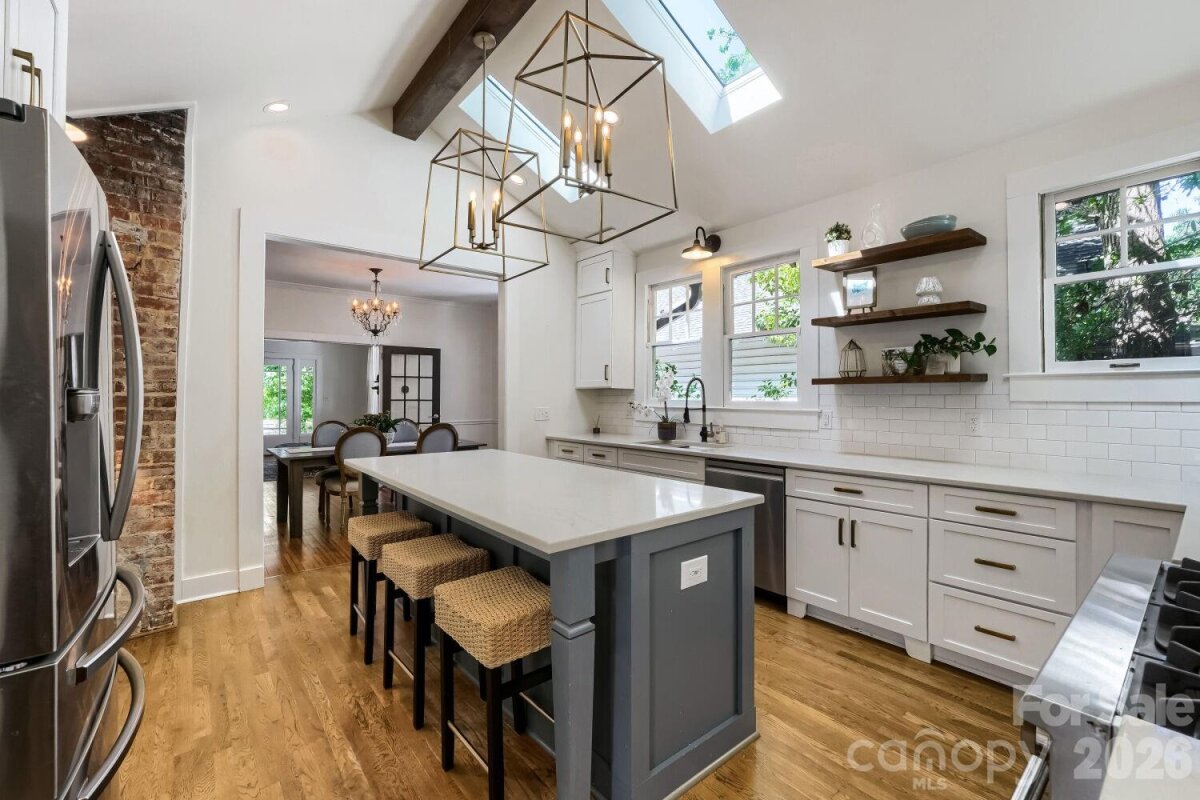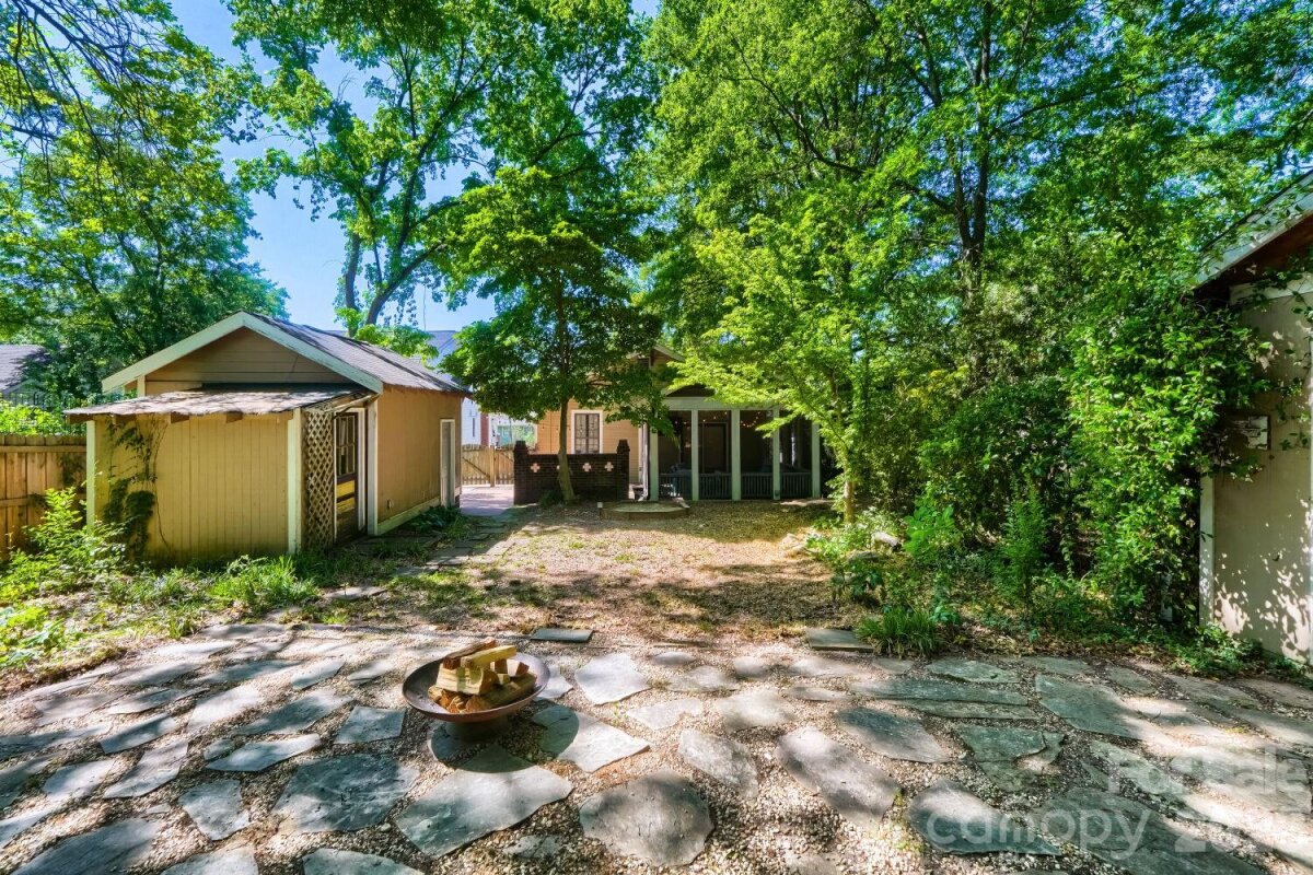 Bungalow bliss awaits on Belvedere Avenue—one of Plaza Midwood’s most coveted streets! Step up to that classic full-width front porch and feel the historic charm hit you right away. Inside, open living flows into a dreamy kitchen with soaring V-vaulted ceilings that makes every meal feel special. Updated cabinets, gas range, stainless shine… modern meets timeless, just like the neighborhood. Hardwoods gleam, bathrooms refreshed, and that screened porch? Perfect for lazy mornings or evening wind-downs. Out back: your private fenced courtyard—lush landscaping, room for a picnic table, maybe even a fire pit setup. Super sealed crawl space too, sump pump ready—no worries there. Massive 120-foot driveway seals the deal, plus you’ve got a rare on-site garage already in place—hard to find in this neighborhood thanks to setback rules. Walk to coffee, bars, shops—everything Plaza Midwood’s buzzing with. Updated HVAC and Roof, 1930’s bones polished up… this one’s a steal. Come fall for it—schedule today!