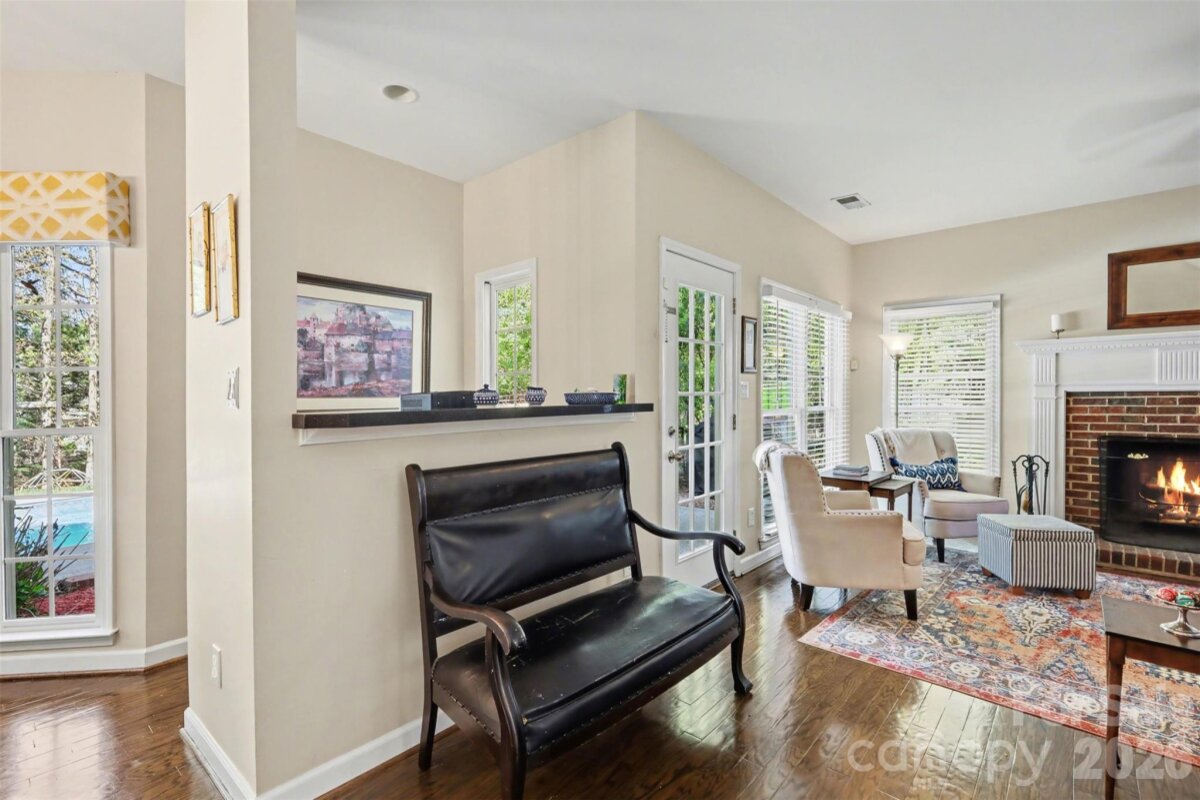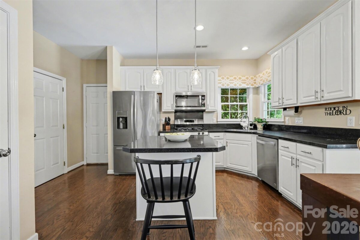 Situated on a beautifully landscaped, tree-lined lot in the sought-after Thornblade community, this elegant home offers a perfect blend of space, comfort, and outdoor living. The classic brick-accented exterior and welcoming front entry create timeless curb appeal, while the expansive yard and mature trees provide a peaceful, private setting. Inside, the home opens to a bright and inviting layout filled with natural light and thoughtfully designed living spaces. A spacious living room centered around a fireplace flows seamlessly into the surrounding areas, creating an ideal environment for both everyday living and entertaining. The kitchen stands out with its clean, modern feel, featuring a large island, abundant cabinetry, and an open connection to the breakfast area, all overlooking the backyard. Upstairs, the home continues to impress with generously sized bedrooms and a primary suite designed as a relaxing retreat. Tray ceilings, large windows, and a spa-like bath create a sense of comfort and sophistication, while additional rooms offer flexibility for guests, work-from-home needs, or hobbies. The outdoor space is truly a highlight, designed for both relaxation and entertaining. Step outside to a private backyard oasis featuring an in-ground pool surrounded by lush greenery, along with a patio and fire pit area that invite you to unwind or host gatherings year-round. The setting feels serene and secluded, making it easy to enjoy both quiet mornings and lively evenings. Beyond the home, the Matthews location offers a vibrant and convenient lifestyle with easy access to local shops, dining, and entertainment. Nearby parks and greenways provide opportunities for outdoor recreation, while the charming downtown Matthews area offers a mix of community events, farmers markets, and local favorites. With close proximity to major roadways, commuting into Charlotte is simple, giving you the perfect balance of suburban tranquility and city convenience.