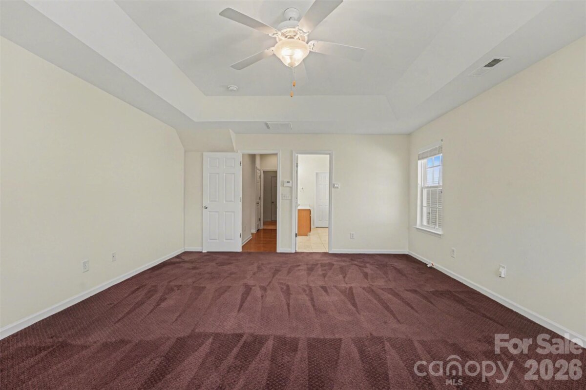 Freshly painted Lawing Pond home with a main-level primary suite and flexible upstairs bonus/4th bedroom with full bath and walk-in closet. Tucked at the end of a cul-de-sac, this move-in ready home offers 2,532 heated square feet, 3 bedrooms on the main level, a 2-car garage, separate dining room, breakfast area, and open living room with tray ceiling and woodburning fireplace. The main-level primary suite features a tray ceiling, ensuite bath, and walk-in closet. New carpet has been installed in the living room, both main-level secondary bedrooms, and the upstairs bonus/bedroom. Laminate flooring runs through the hallway, kitchen, and breakfast area. The kitchen is equipped with all new stainless steel appliances and opens to the main living spaces for easy everyday living and entertaining. Ceiling fans in the living room and bedrooms add comfort throughout. Enjoy a private rear setting and a versatile floor plan with space for guests, hobbies, work, or additional living needs.